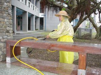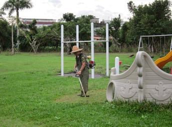 2.為維護環境整潔有退休的社區民眾自動到學校協助整理花木,修剪草坪,十分感謝他對學校的付出