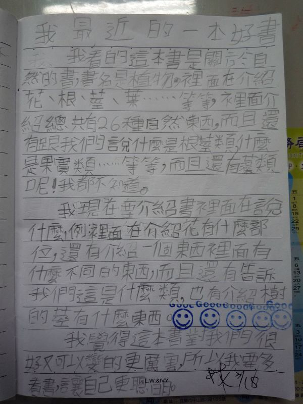 未來每個月老師會請同學寫一篇”我最近看的一本書”,挑選一本你最看過覺得最好看的一本書,將書本大意.吸引你的地方及心得寫下,並分享給同學~