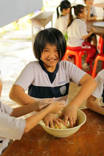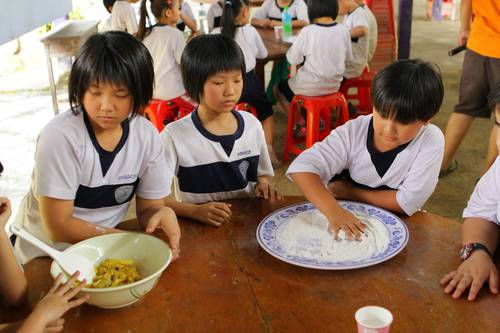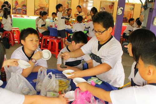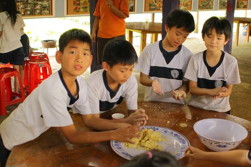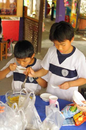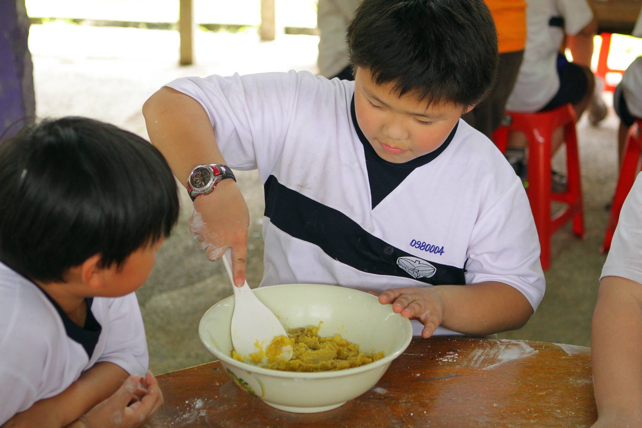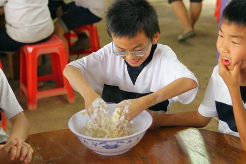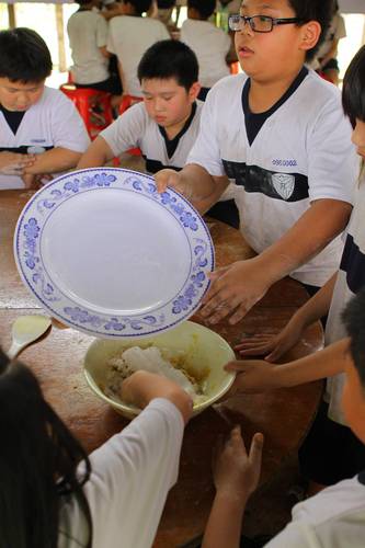 ↓搓完之後,Fish把我們做好的拿給廚房叔叔幫我們煮!