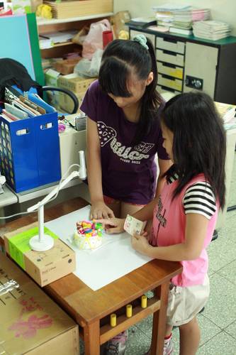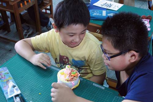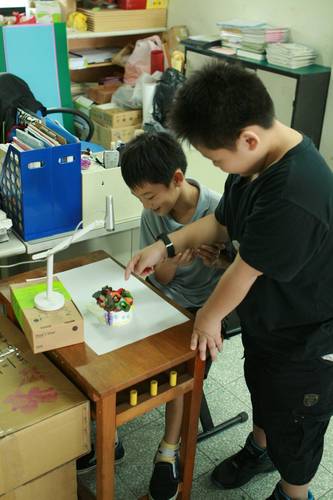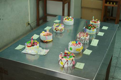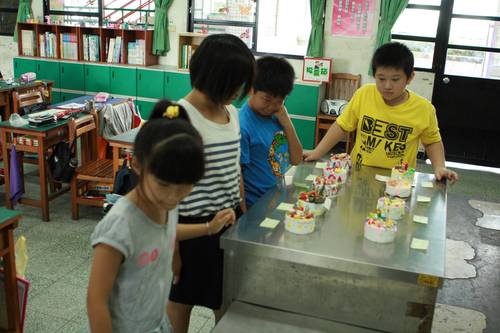將各組的作品放在講台上,請各個評審在上台細細觀察,選出三個自己心目中最棒的蛋糕!