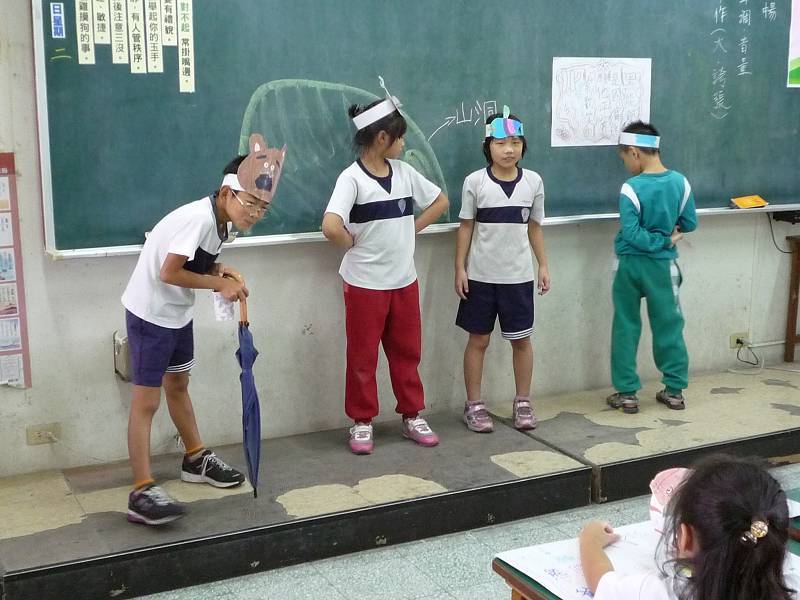↓最後一次彩排就安排在教室講台(也就是未來正式演出的舞台)
