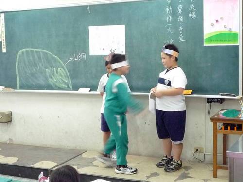 ↓同學們將毛巾披在肩膀上,讓老師直覺想到那些扛大神尪的信徒,分享給同學們~