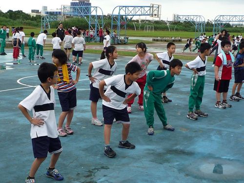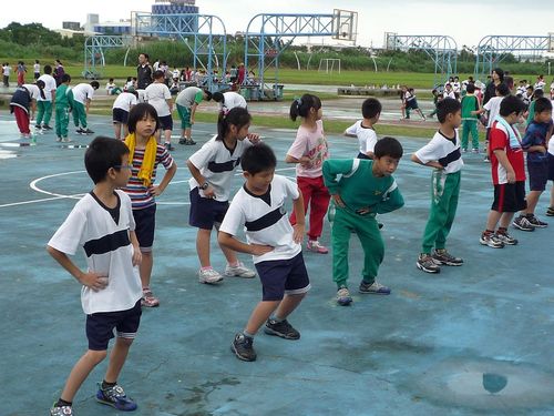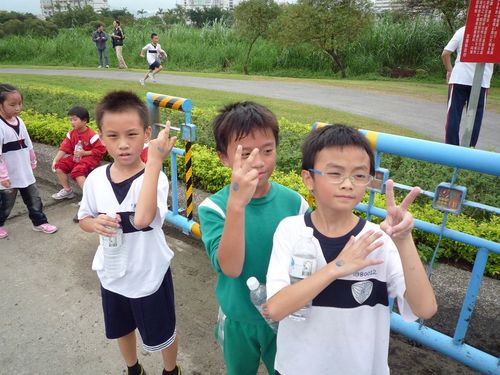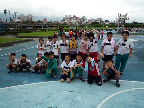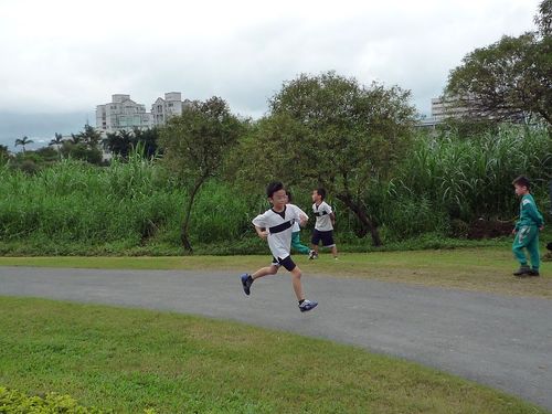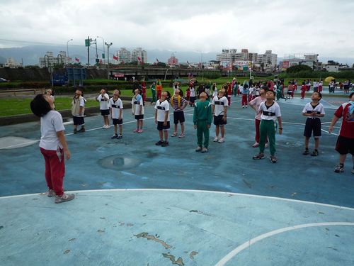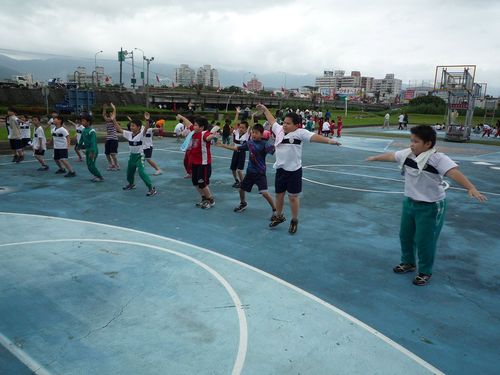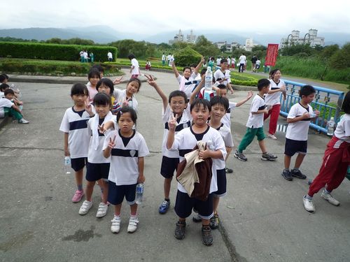 ↓全校集合後,就立即前往河濱公園,開跑之前先做的暖身操吧~