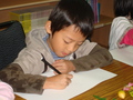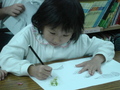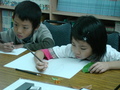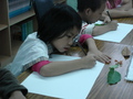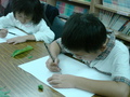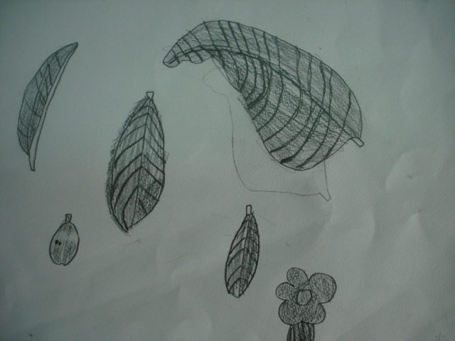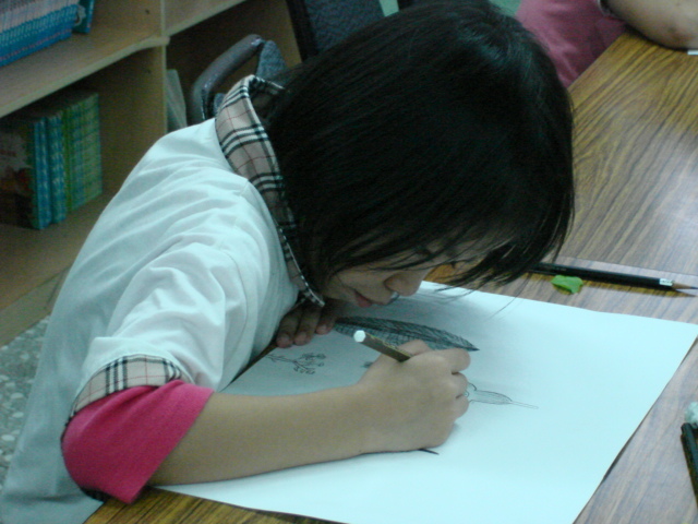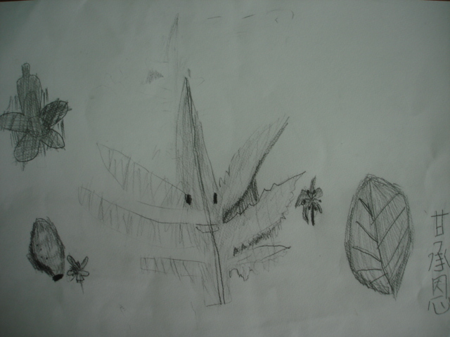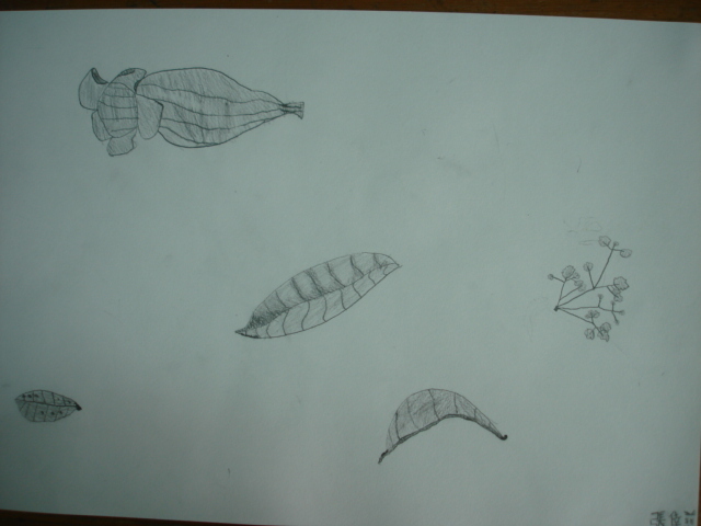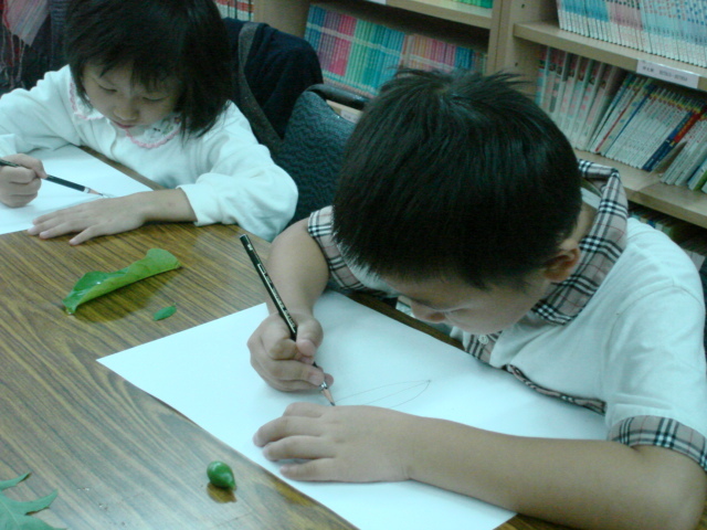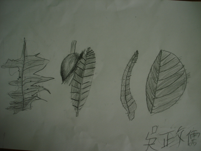 美感教育第三堂課是植物寫生。今天本來打算移至校園進行寫生,但因天候不佳,下起大雨,只好請學生摘採植物到教室進行教學。本次課程是孩子們第一次接觸2B、4B、8B鉛筆,感覺很新奇