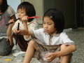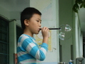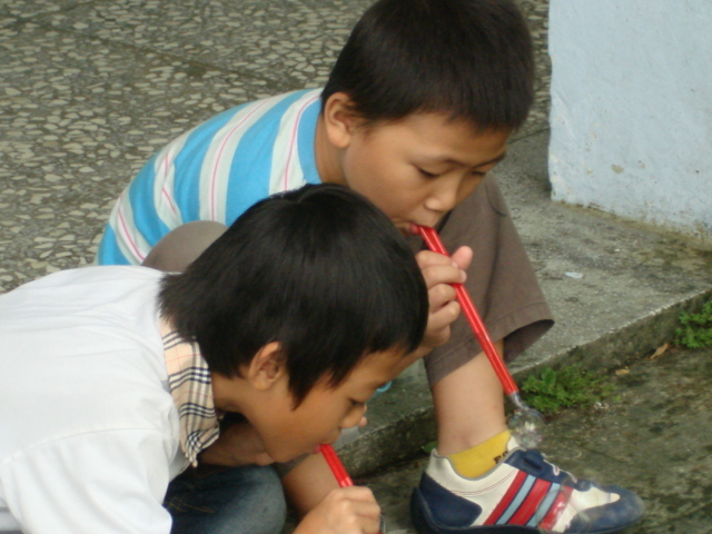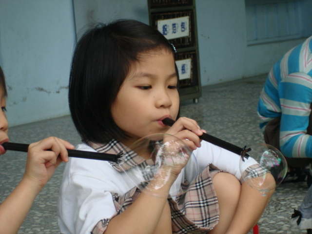 吹泡泡真好玩!你吹一個小泡泡,我吹一個大泡泡,他一口氣吹出許多的泡泡,美麗的泡泡一個接著一個飛上天。
