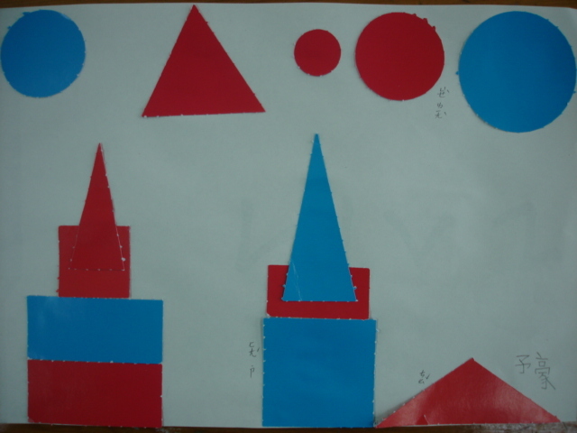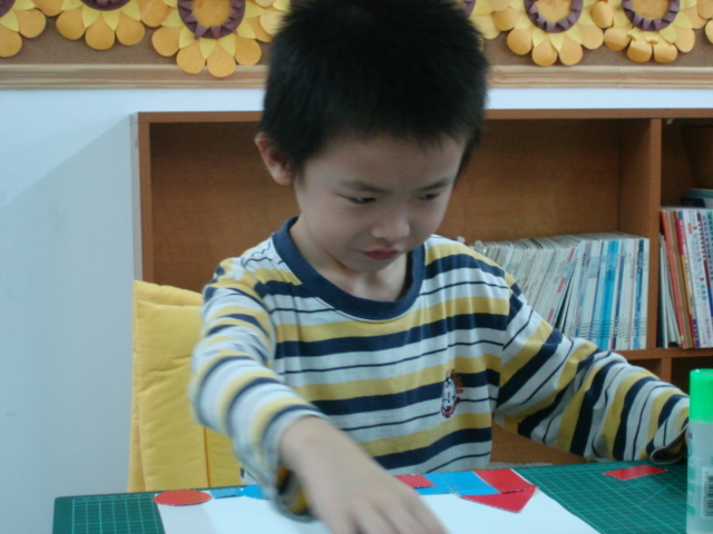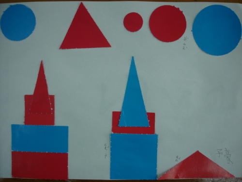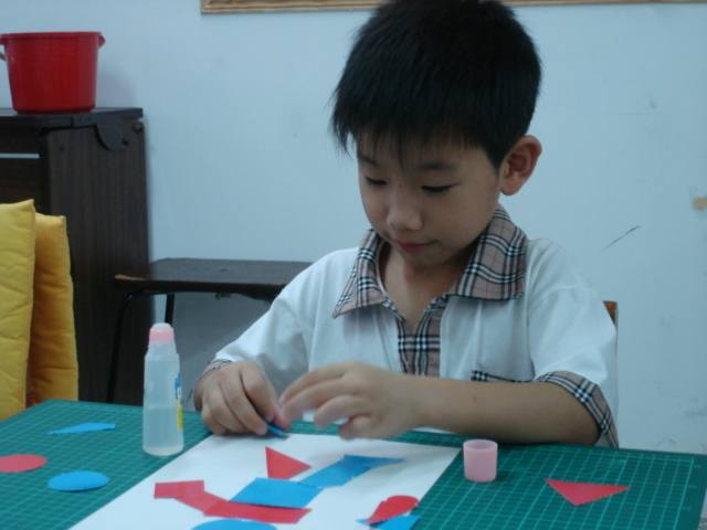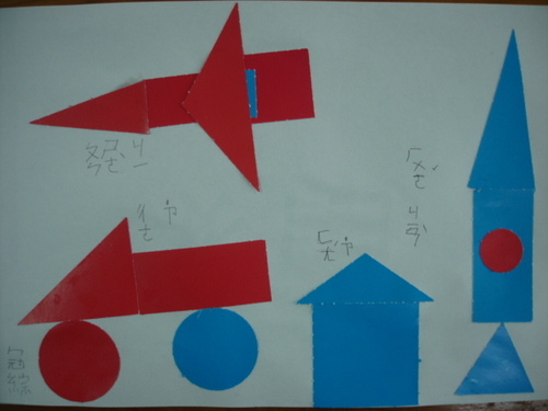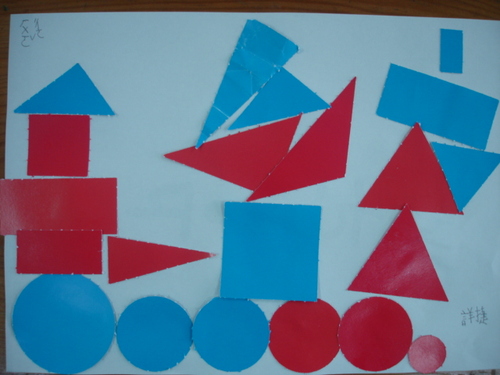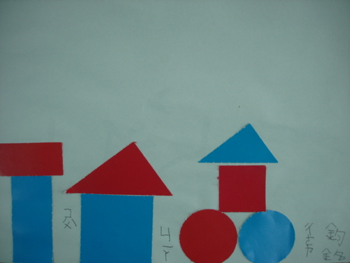 數學課教孩子們認識平面圖形,再請孩子們利用附件圖卡設計一幅畫,當個小小設計師。