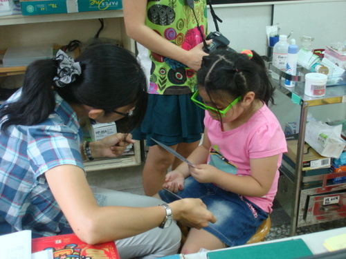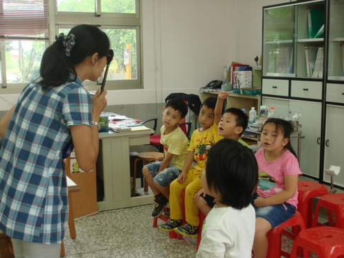 初體驗-口腔檢查及身高體重視力測量每學期期初學校都會安排孩子們測量身高體重視力及口腔檢查,今天是孩子們第一次到本校,懷著興奮及不安的情緒接受檢查。有些孩子們很勇敢,坐上牙醫專用診療椅,毫不懼怕,但也有學生看到診療椅就哭了。護士阿姨解說量視力的方法[@more@]量身高體重量視力立體圖辨識色盲辨識口腔檢查