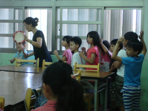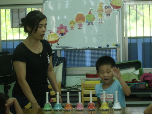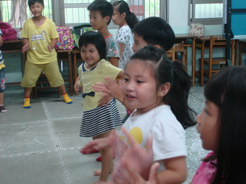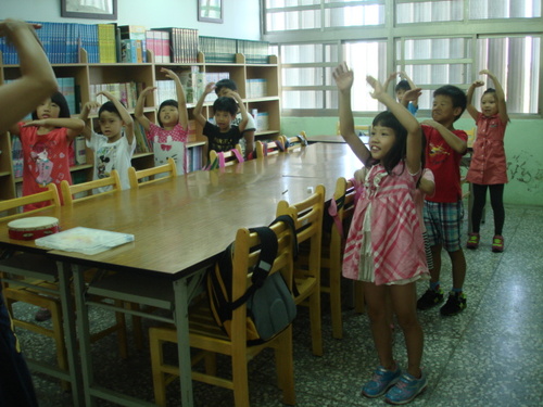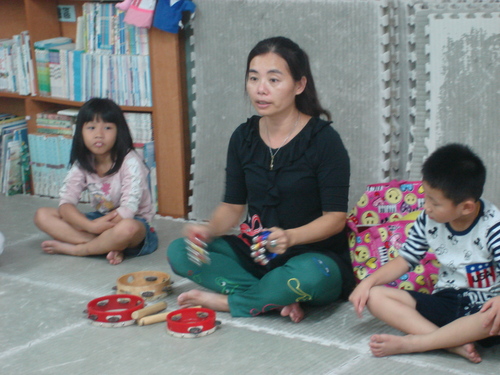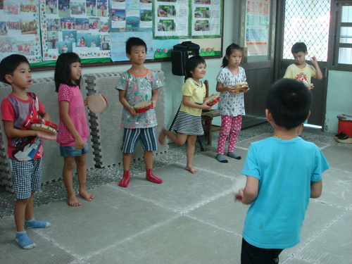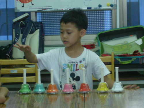 奧福音樂課程-PART3按往例,今天的暖身活動,小朋友們又發揮了想像力與創造力,展現了各式的動作。今天Lily老師先讓孩子們分成三組,利用鈴鼓、木棒、手搖鈴進行合奏;之後又讓孩子們分成兩組,一組扮演海浪,另一組則扮演划船在海浪中勇往向前的勇士。快樂的暖身活動[@more@]快樂的暖身活動快樂的暖身活動快樂的暖身活動Lily老師介紹樂器Lily老師介紹海浪表演方法小朋友的海浪練習