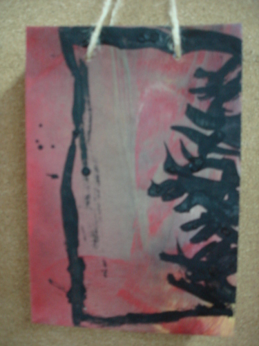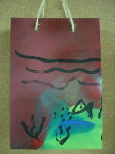 獨一無二的紙袋這一堂課將廣告顏料-三原色及黑白2色隨意灑在牛皮紙上,再利用滾筒滾出許多驚喜,最後再請孩子在紙袋上加個幾筆。在一連串的驚呼下,孩子們便完成了獨一無二的個人專用紙袋。景堯作品[@more@]琮富作品威德作品沛珊作品庭瑩作品乙錚作品