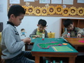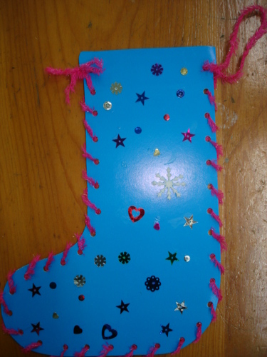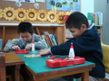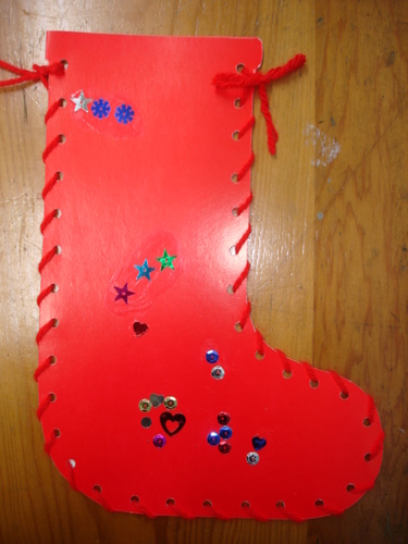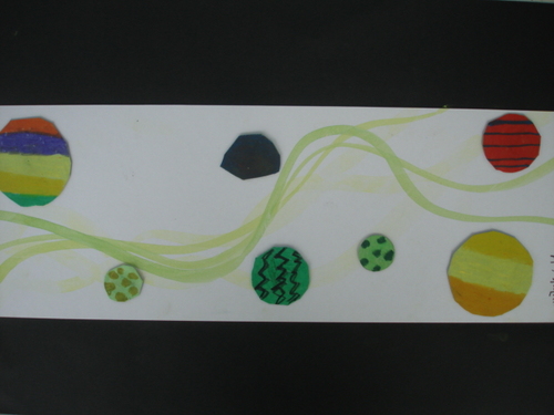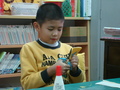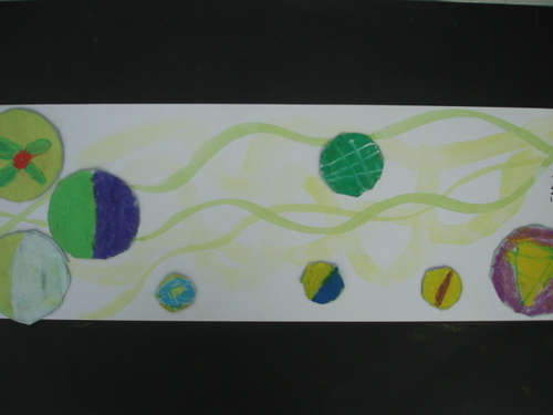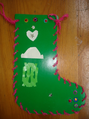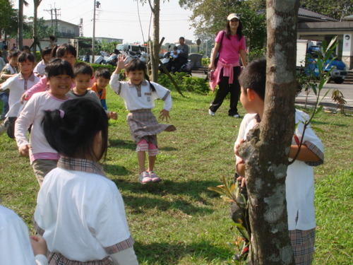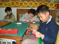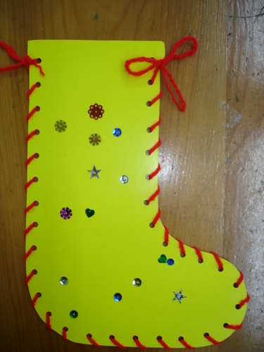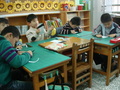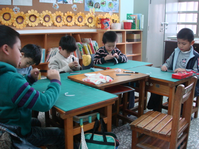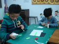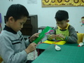 聖誕節總要擺棵聖誕樹才有過節的氣氛,可是教室空間不足,無法容納,所以就教學生做了紙圈聖誕樹應景。