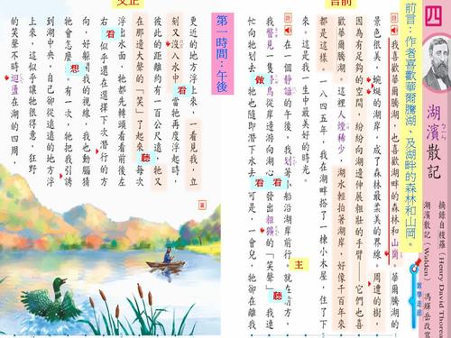 國語第九冊第四課「湖濱散記」文本與篇章結構圖供參考(閱讀理解自編教材)…