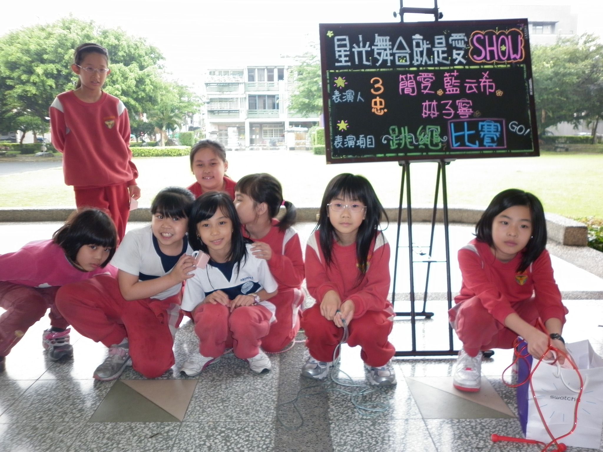 發佈於 2012 年 5 月 3 日2021 年 3 月 18 日 作者: 許永明三忠星光SHOW==PART2三忠超級星光秀PART2云希 子寧 小愛登場囉!!主題:跳繩比賽我們有用心準備的各式花式跳繩,難度很高喔!!請為我們鼓勵鼓勵!!此外,還有精彩的跳繩挑戰賽喔!!