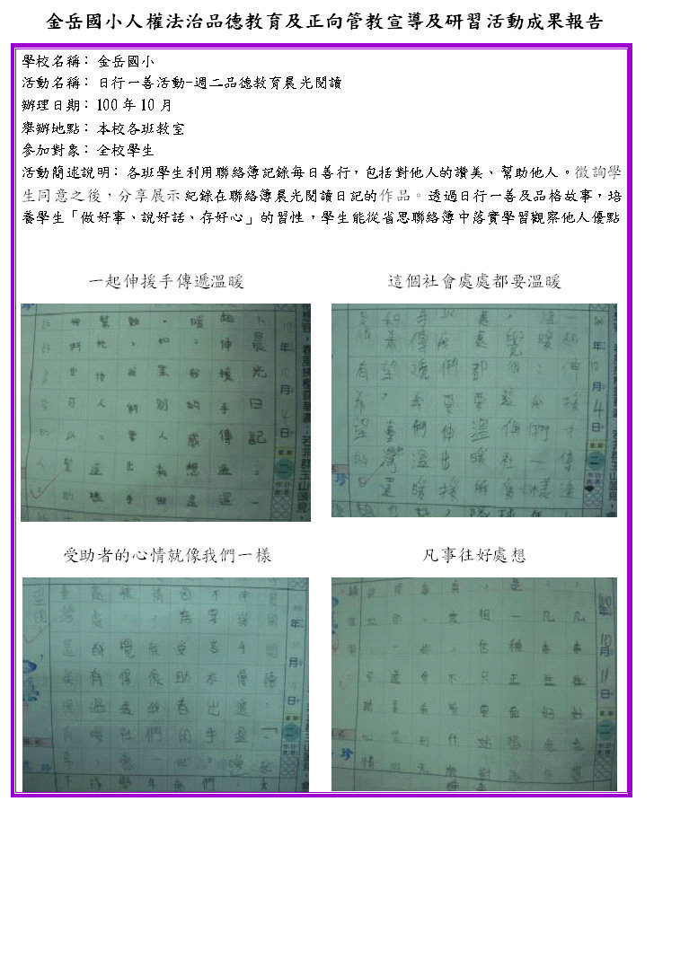 日行一善活動-週二品德教育晨光閱讀成果(學生心得100.10)