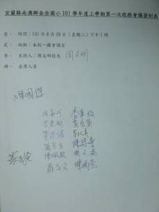 學校名稱:金岳國小 活動名稱:101學年度上學期第一次校務會議暨性別平等教育委員會議 辦理日期:101年8月28日(星期二)下午1時~4時 舉辦地點:本校會議室 參加對象:本校教職員,15人 活動簡述說明:於每學期期初召開友善校園學生事務與輔導工作會議,相關計畫及辦法做微調修正討論。學校處理學生間發生刑法第二百二十七條事件應注意事項說明,性別平等教育計畫、性侵害性騷擾防治機制、通報處理流程說明,會議由校長主持。 |