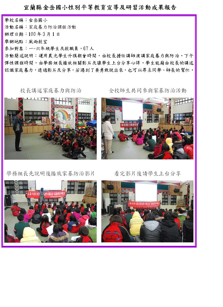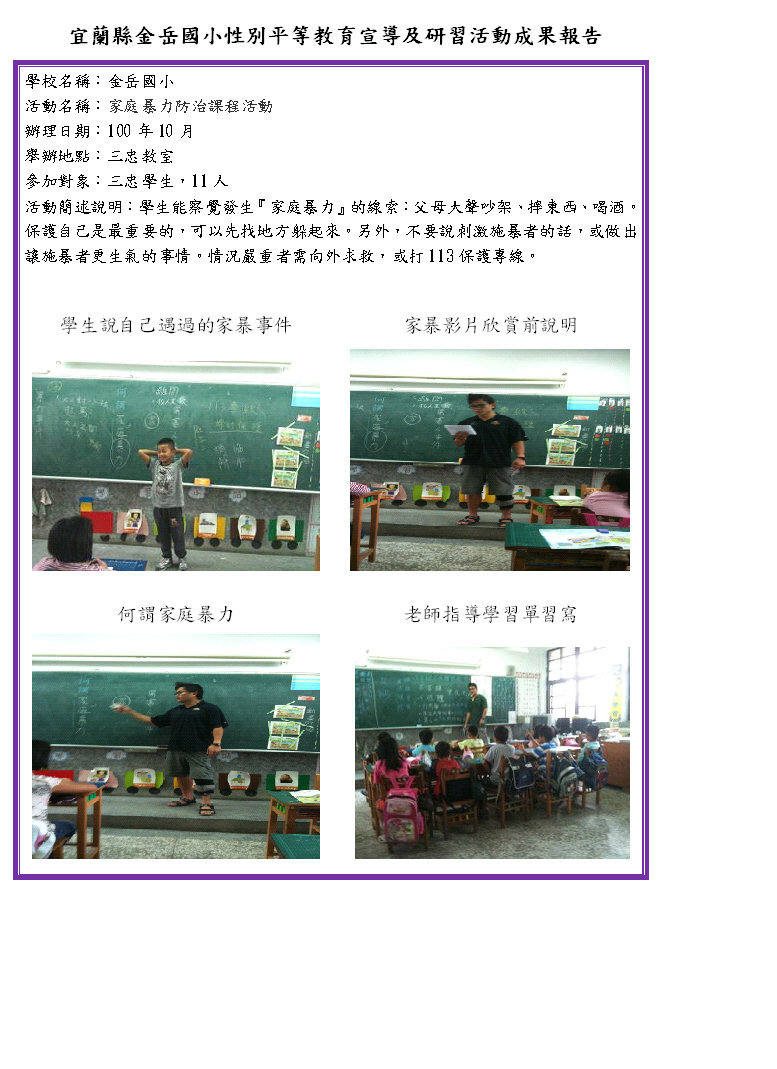 99學年度下學期家庭暴力防治課程活動成果