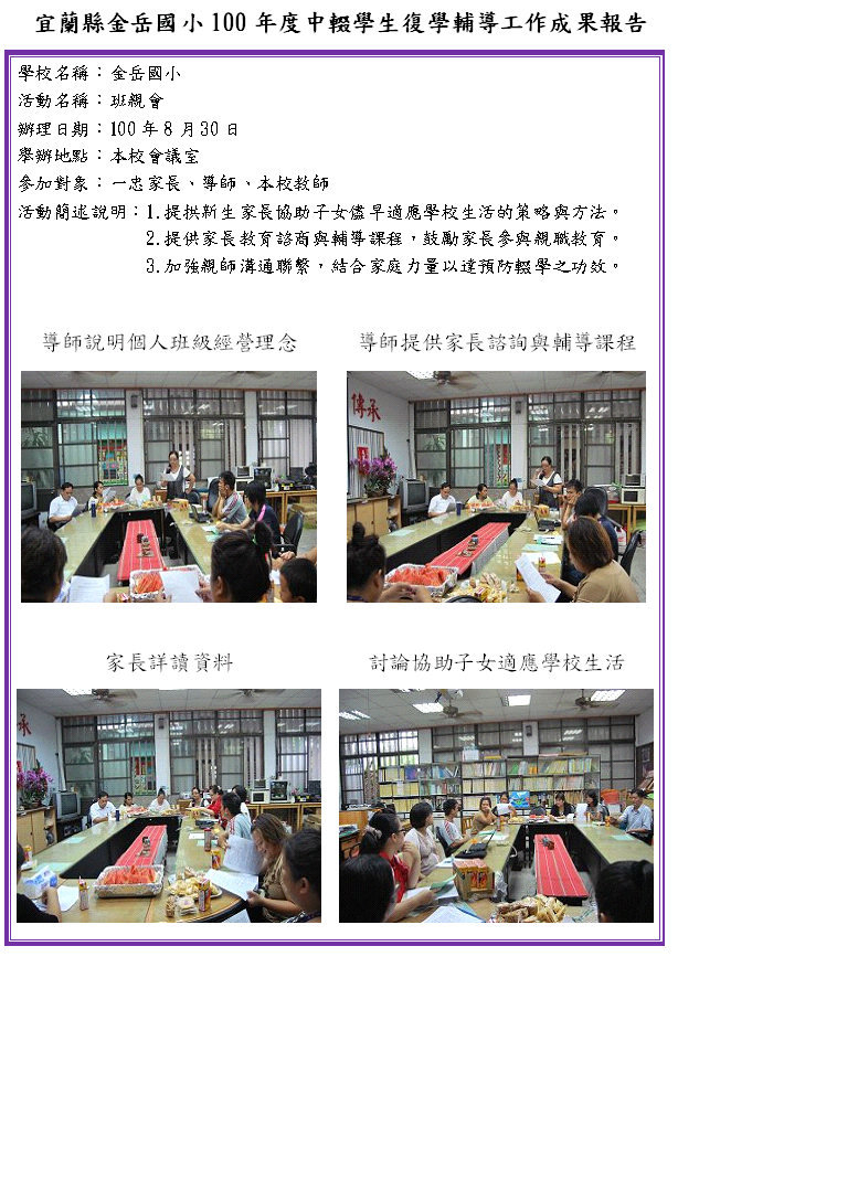 金岳國小100年度中輟生復學輔導實施計畫