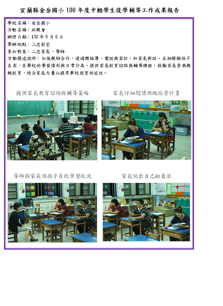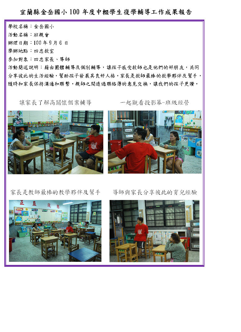 宜蘭縣南澳鄉金岳國小100年度中輟生復學輔導實施計畫