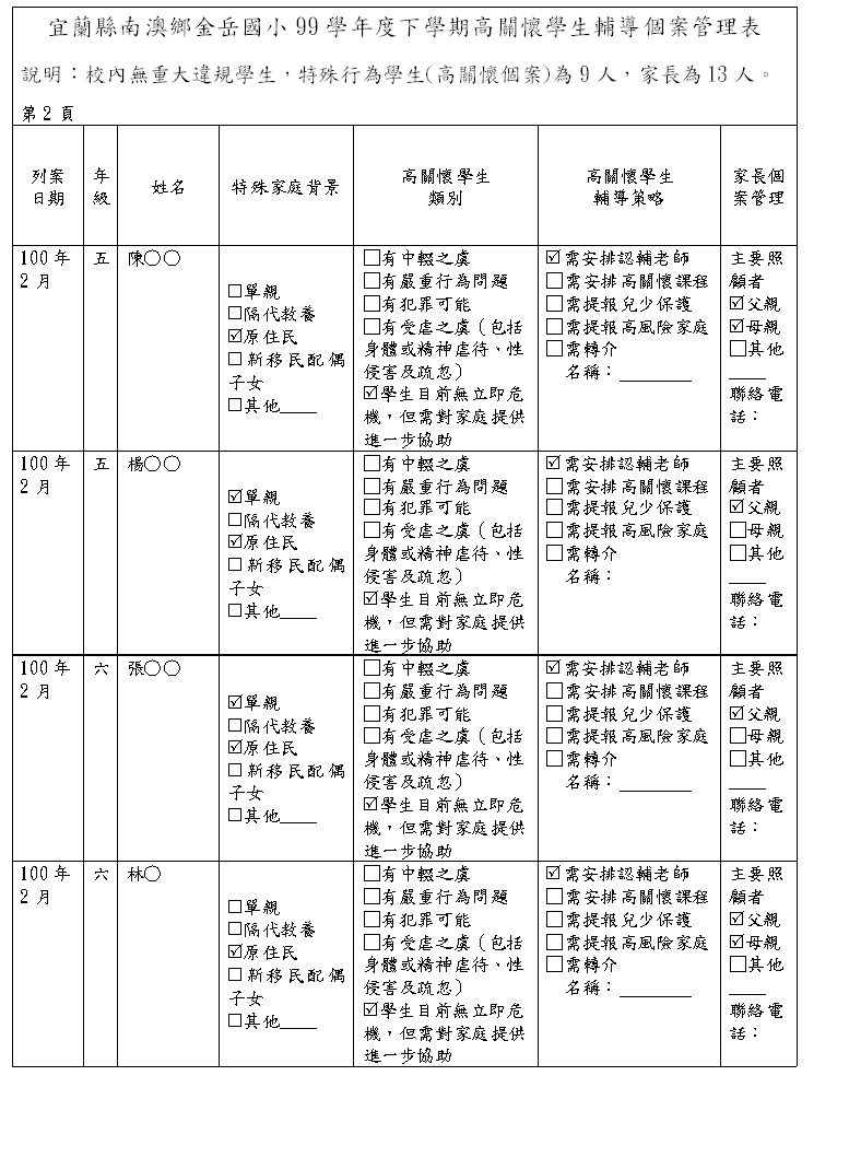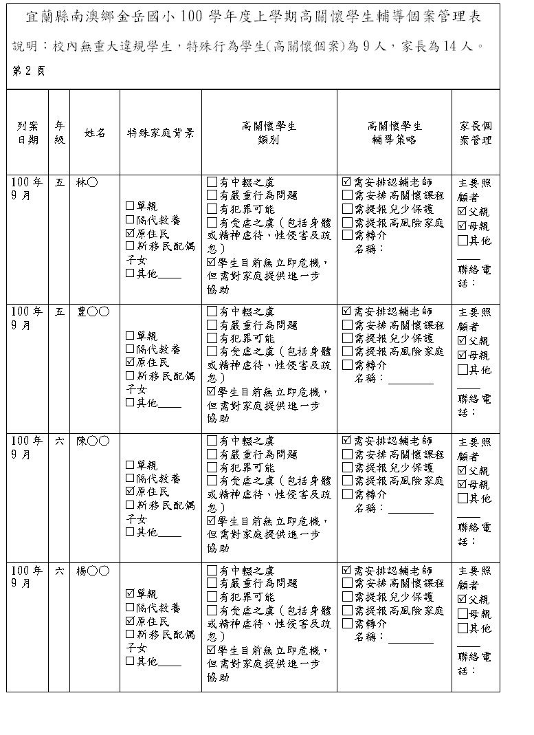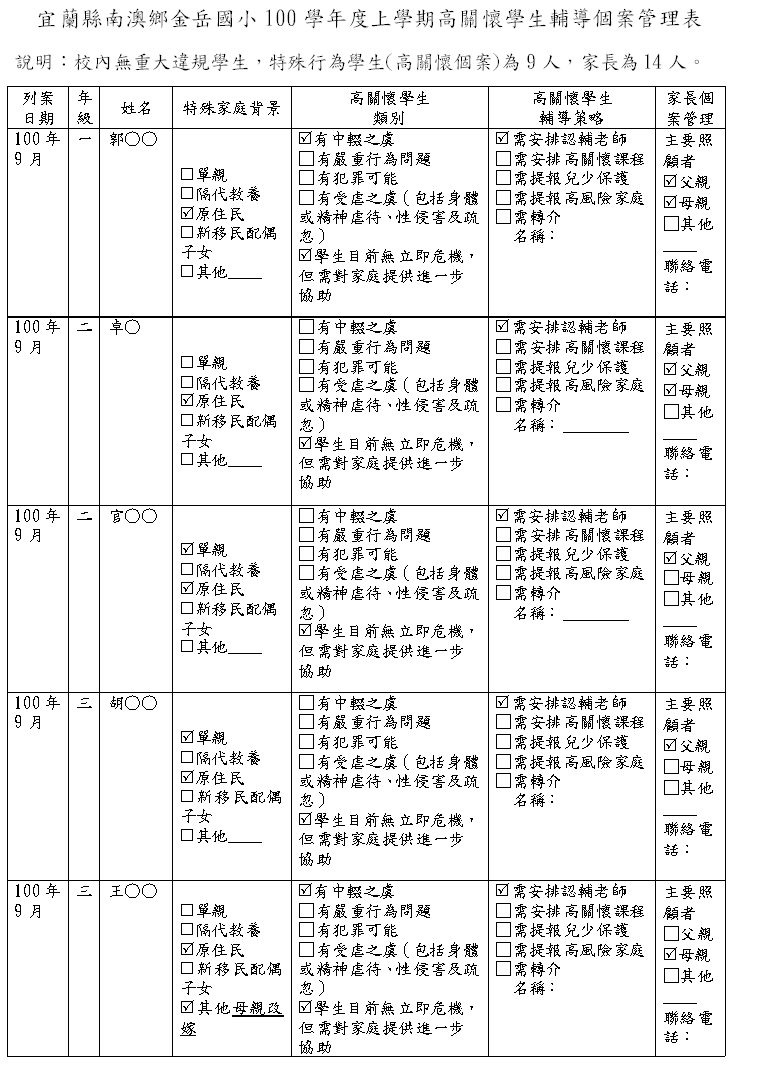 100上高關懷學生輔導個案表