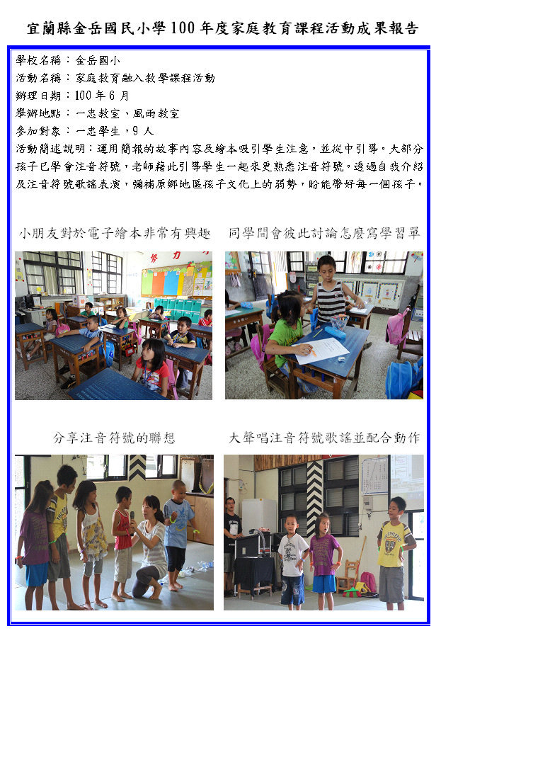 宜蘭縣南澳鄉金岳國民小學推動家庭教育工作成果網
