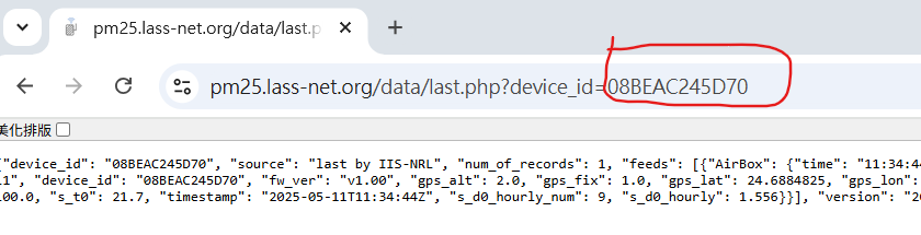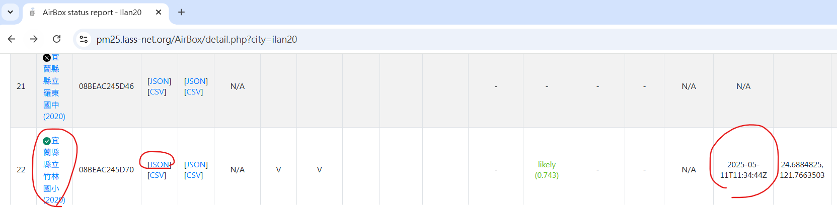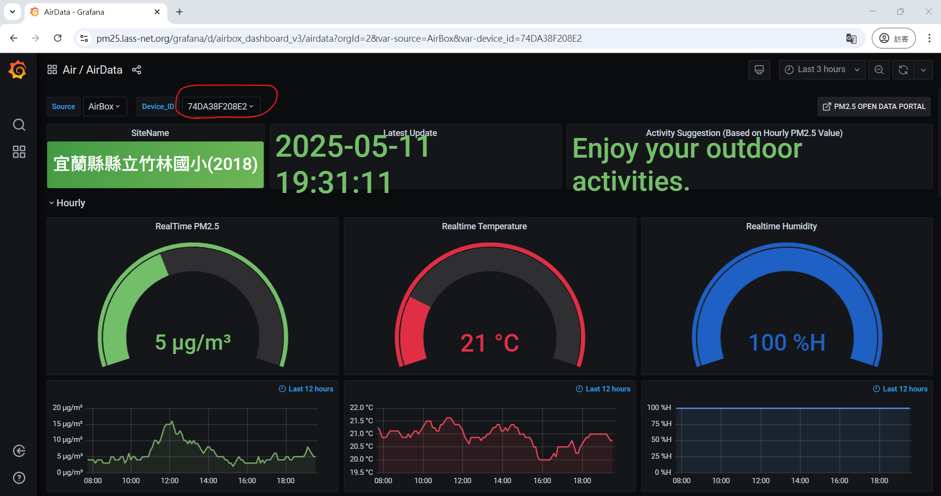 EdiGreen 空氣盒子,可以看到站點名稱及PM2.5資料(看不到編號)