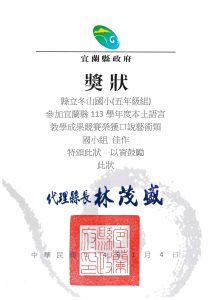 宜蘭縣113學年度本土語教學成果競賽表現優異!!
