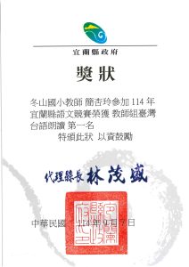 本校 簡杏玲老師榮獲114年宜蘭縣語文競賽  教師組臺灣台語朗讀組 第一名!!