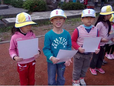 第一次升旗,小朋友們幾乎沒遲到,只有鍾毓一個人遲到而已,