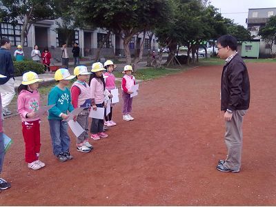 看他乖乖的坐在教室裡面,不敢亂跑,….我就放心的在操場陪這群第一次升旗的學生們.