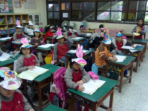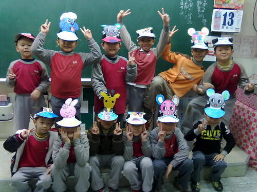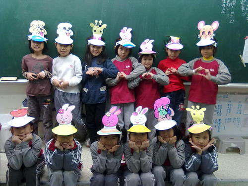 全班小帥妹的動物帽子,小女生比出動作,好可愛喔!