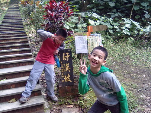 第十二個步驟:一定要在好漢坡拍個照…嘻!小毓怕高,不敢看下面,可以來玩玩他啊!