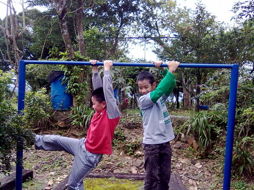 第十五個步驟:在山頂上玩個夠(有單槓,有盪鞦千,有搖床,還有涼亭)