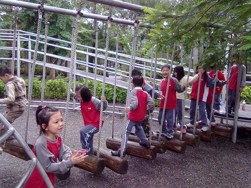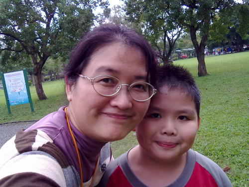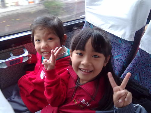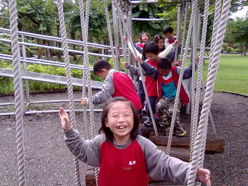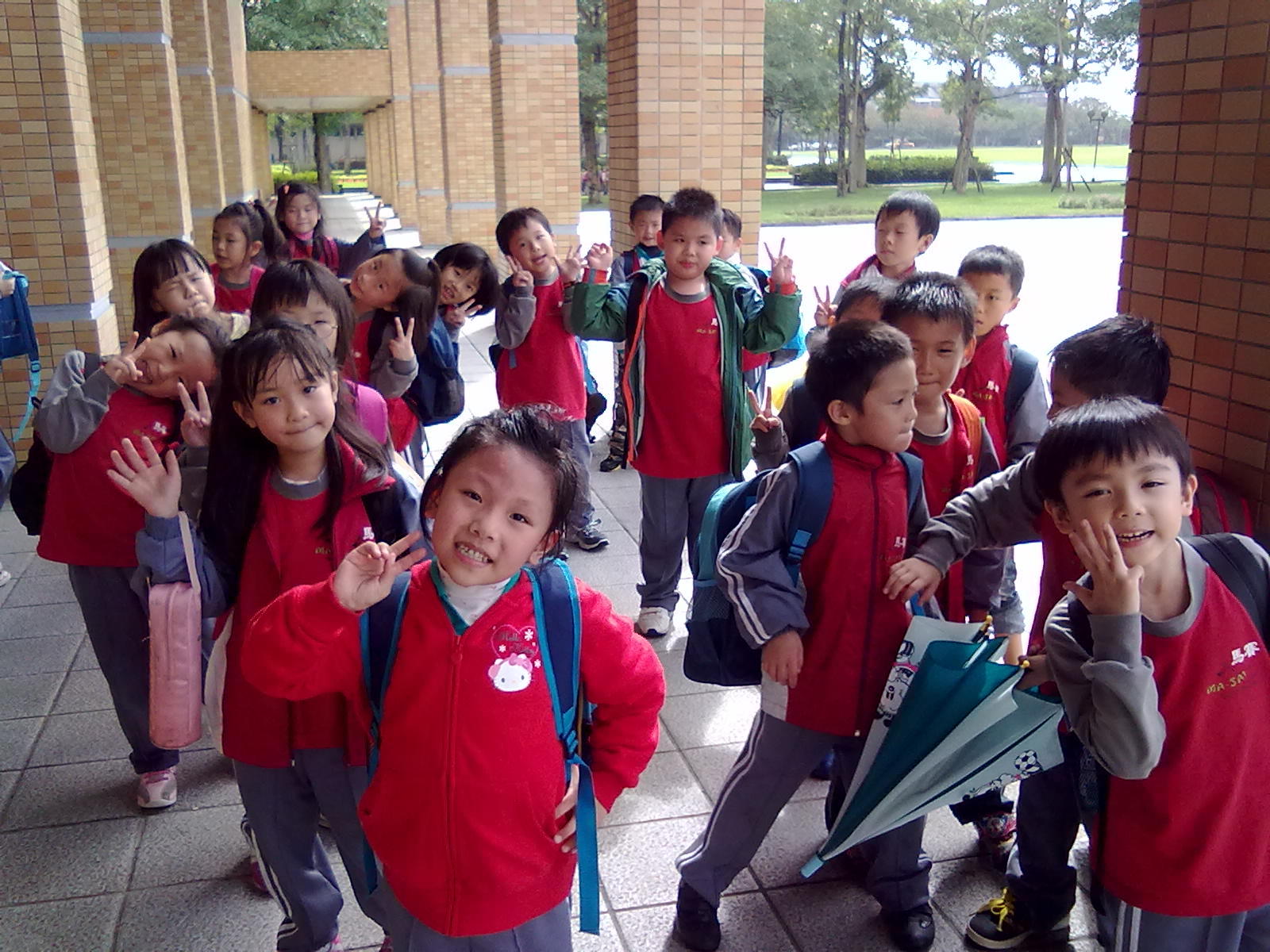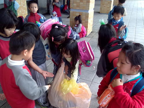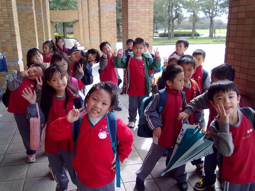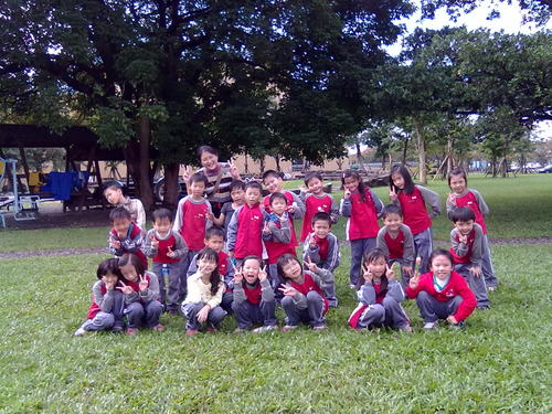 老師和小朋友和拍,其實是老師拿相機,自拍..