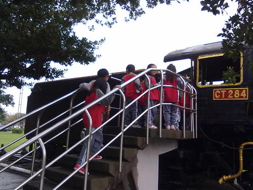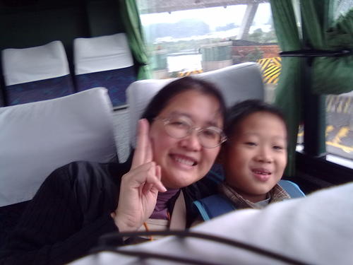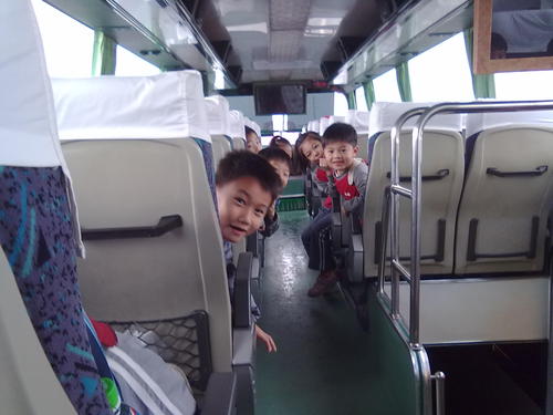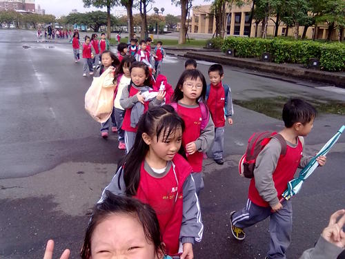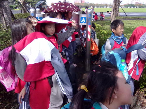 我們等了一下車子,小朋友一直喊,…好熱…..我們再等等吧!