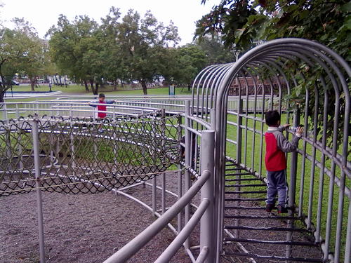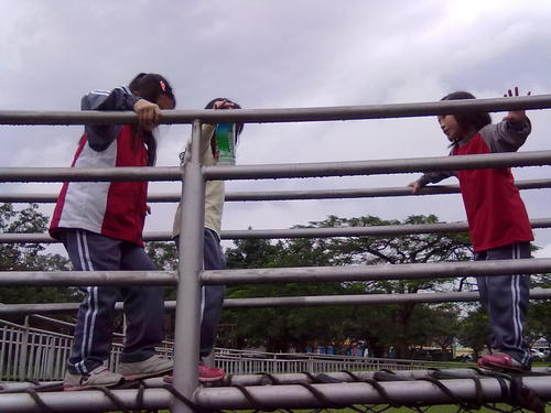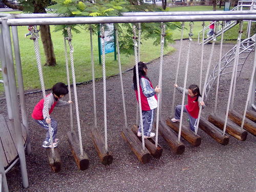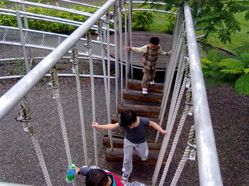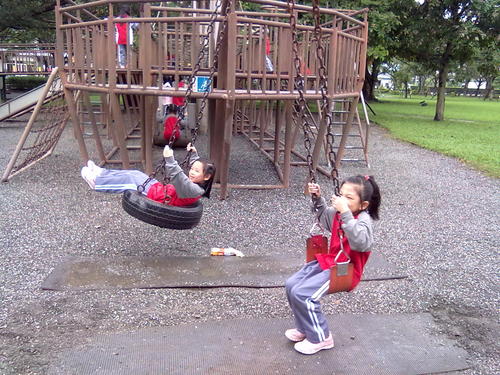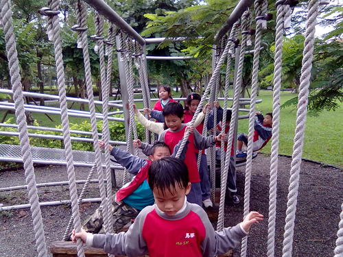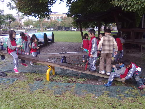 在哪裡玩,在屋簷下玩,因為下大雨…..小朋友下車 前還會自己穿雨衣,