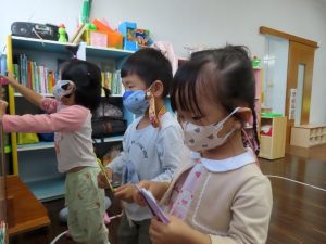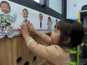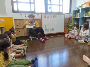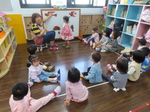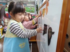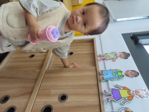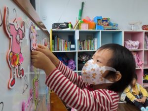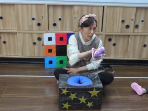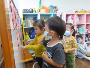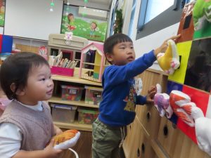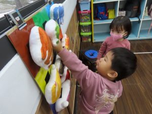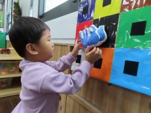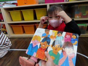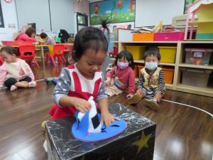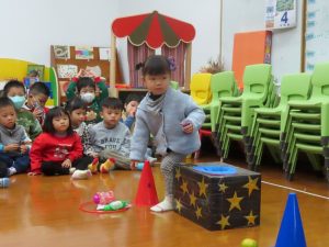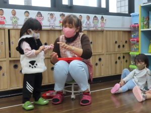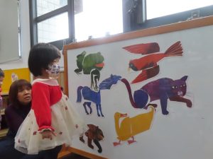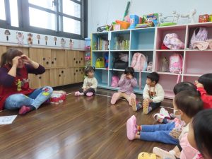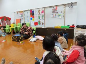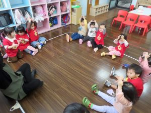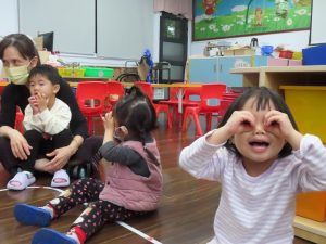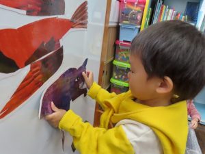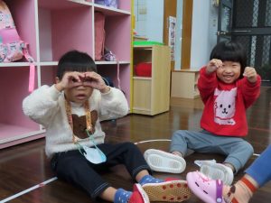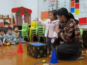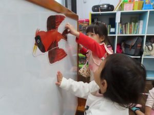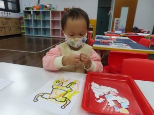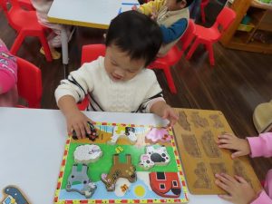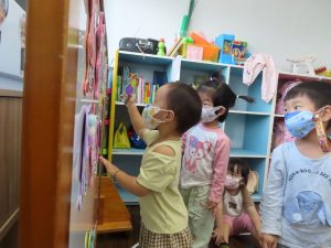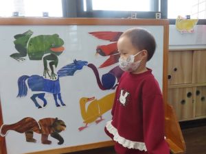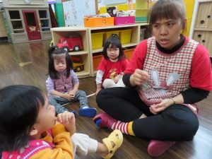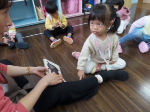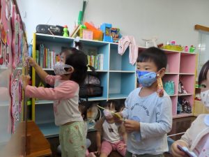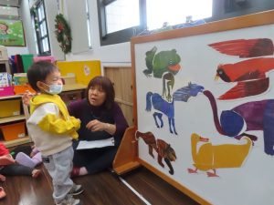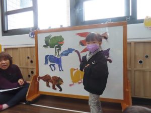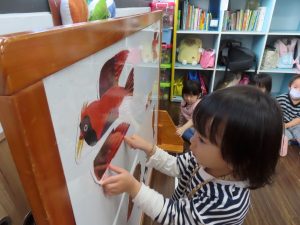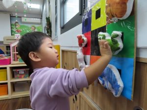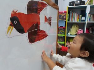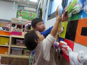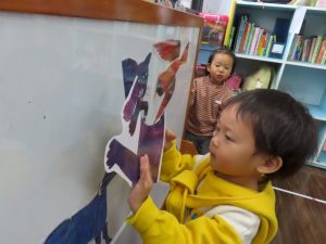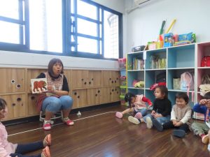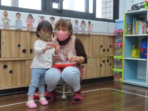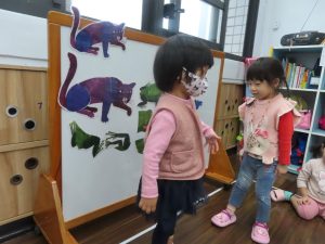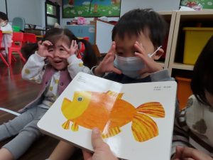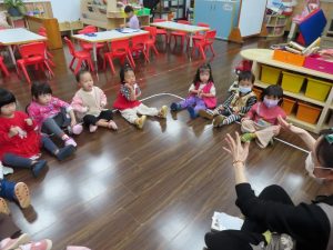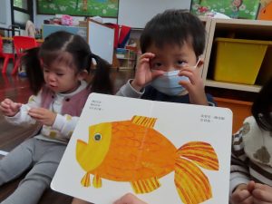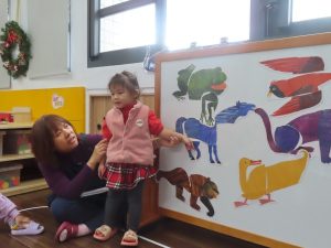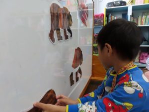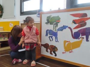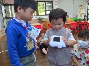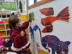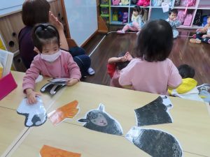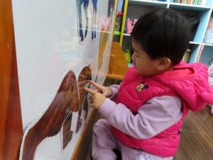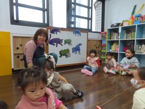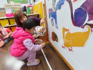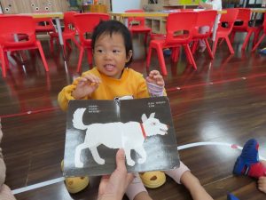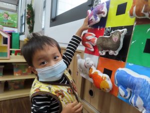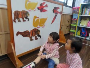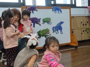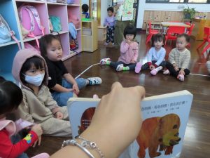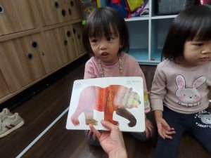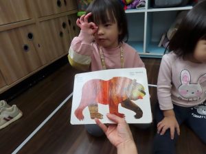 回顧繪本:棕色的熊、動動腦~說一說、遊戲時光機、小小觀察員、大風吹~拼拼樂、拼圖小劇場。
