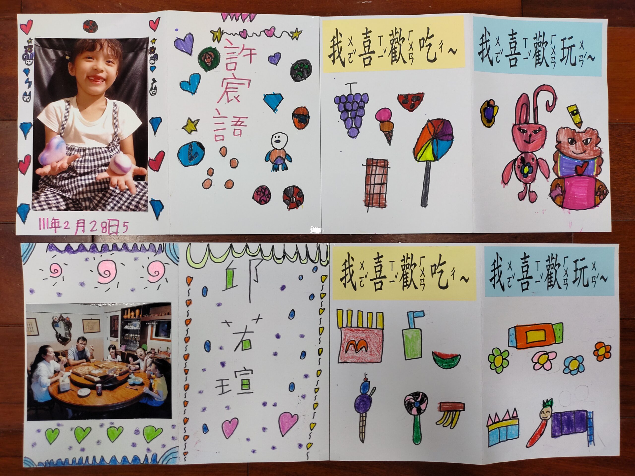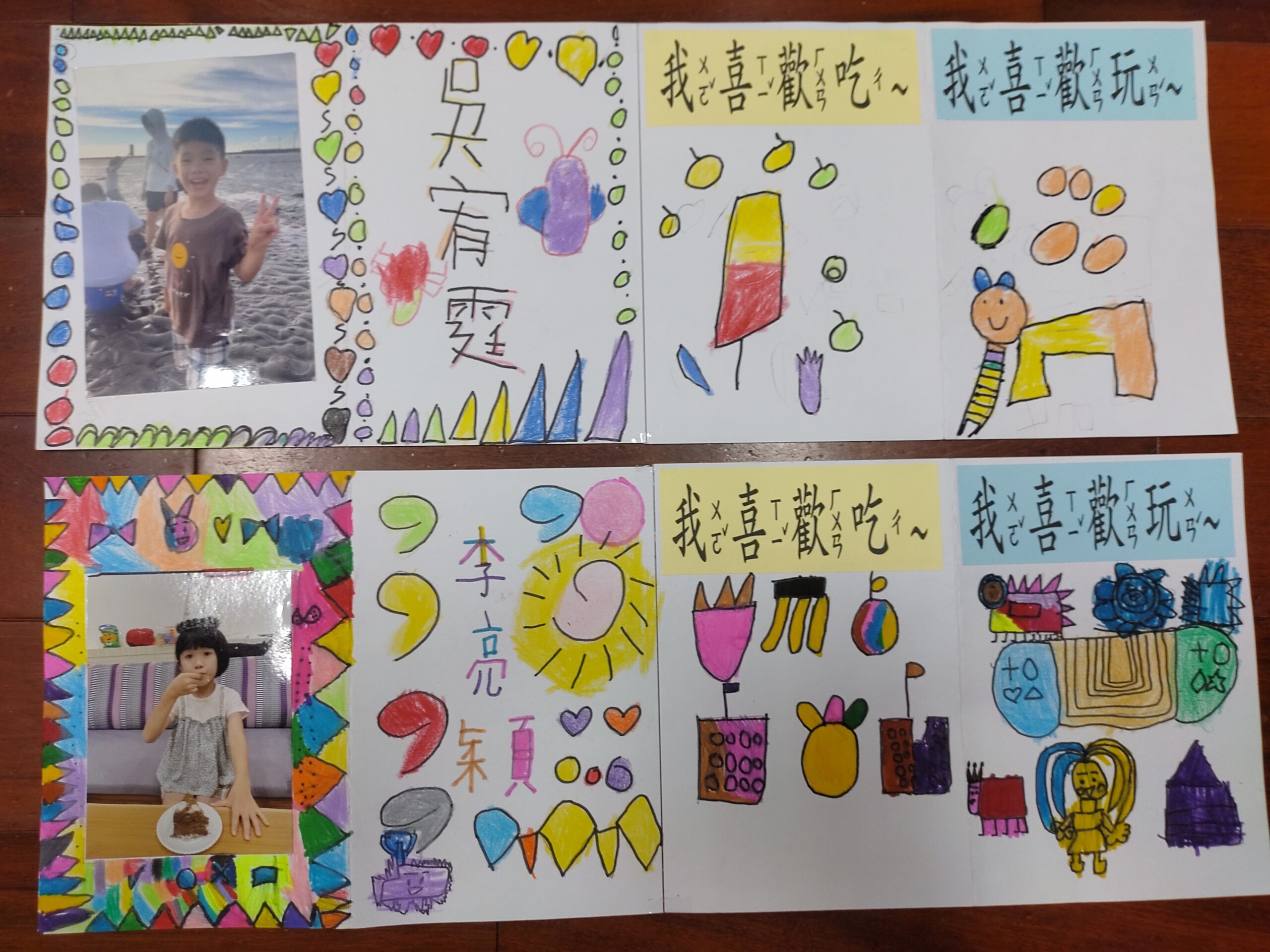 我的小檔案2022 年 11 月 3 日 林冠妙美勞課老師教小朋友做「我的小檔案」,小朋友寫下最喜歡吃的東西、最喜歡做的事情,然後畫上邊框,就是一張漂亮的小檔案了!小朋友拿著自己的小檔案上臺自我介紹,讓老師、同學更認識自己,我們班愈來愈像一家人了呢!