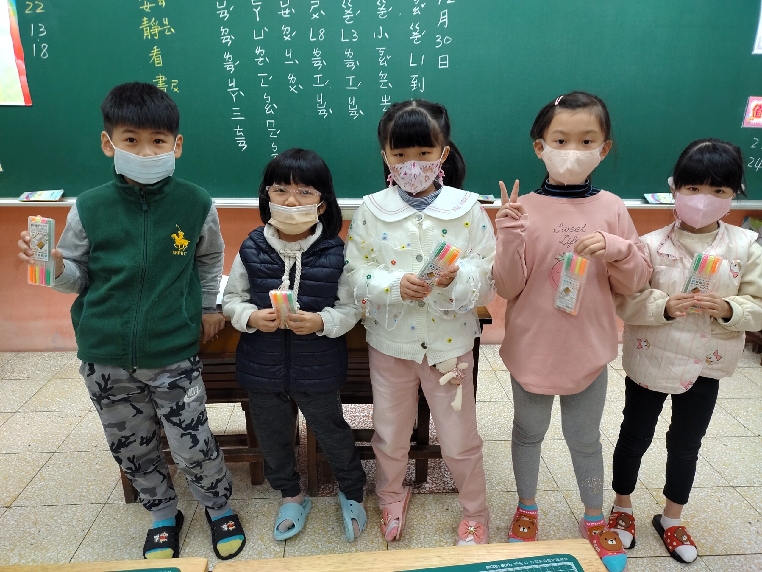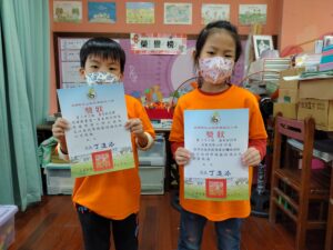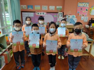 星期二英語闖關活動,第五組的小朋友得到最多點數,學校準備精美禮物送給獲獎的小朋友,恭喜宸愷、宥霆、千羽、苡樂、喬媛、亭穎!