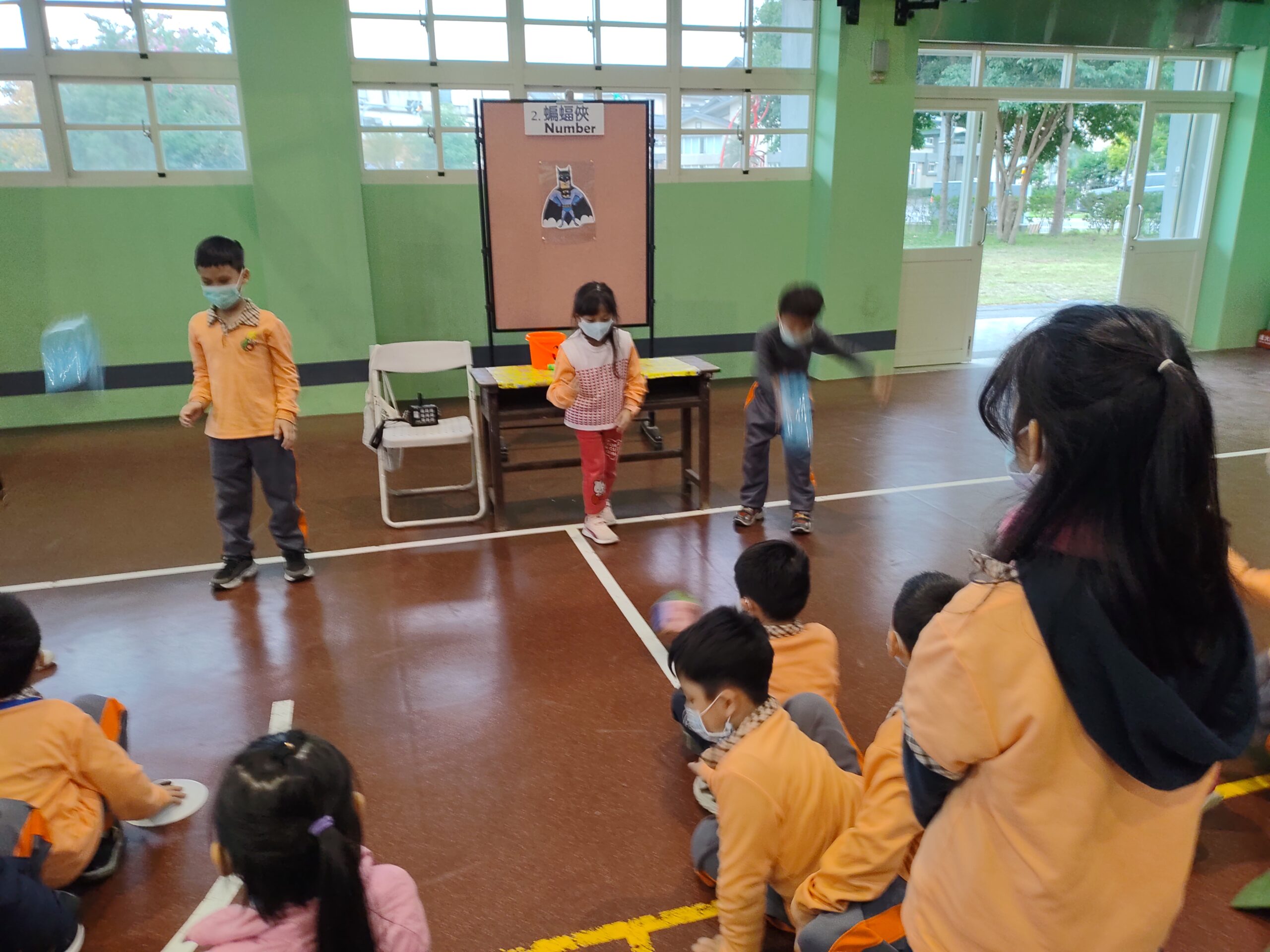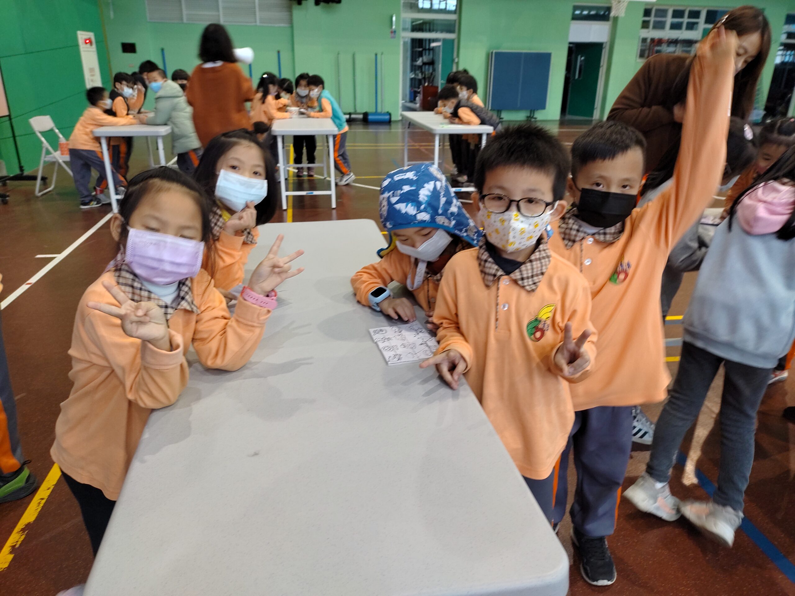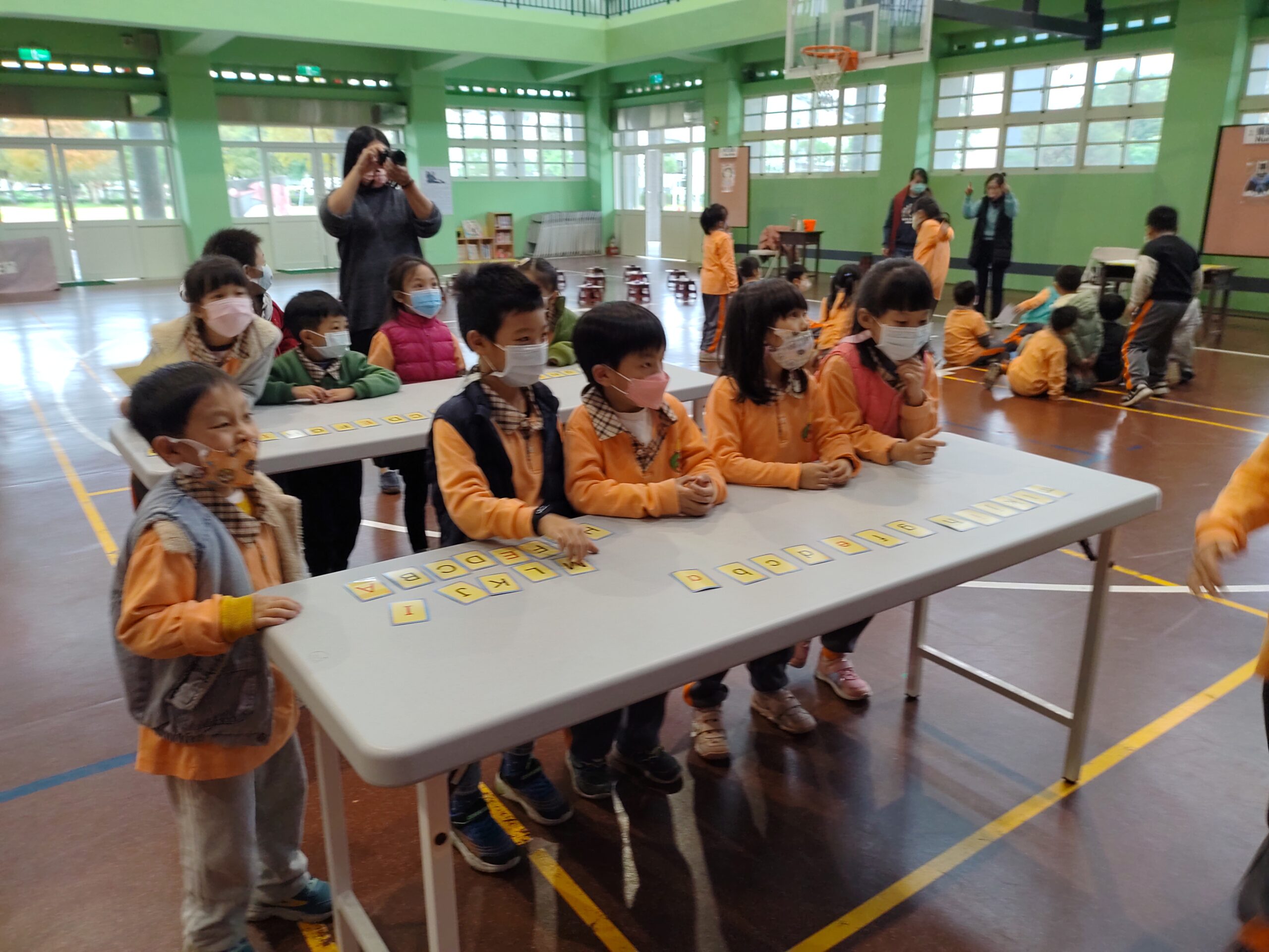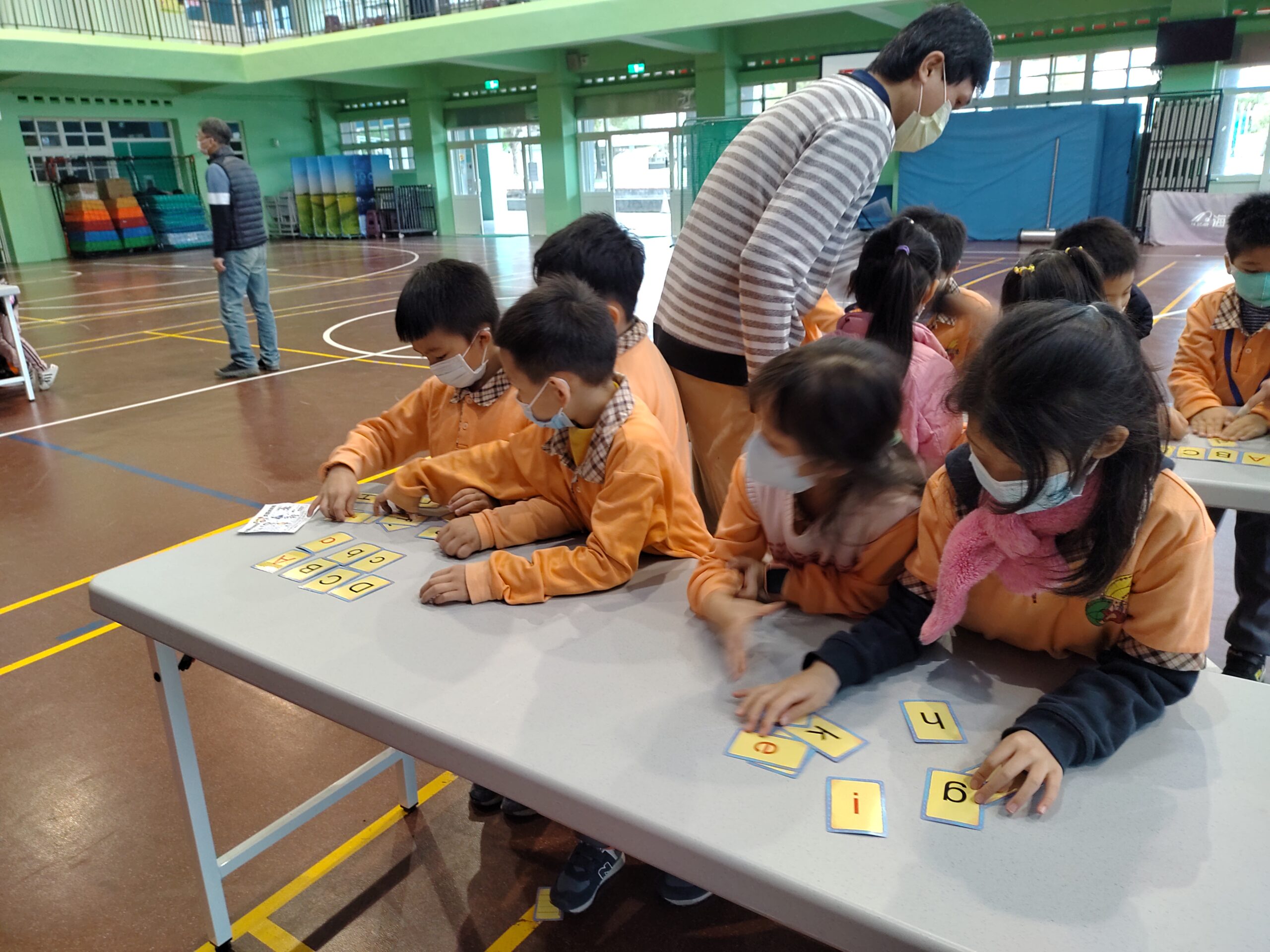 今天下午,全校一年級小朋友在體育館參加好玩的英語闖關活動,活動共分五關,第一關「I can write」,在小白板上寫出正確的大小寫字母、第二關「Number」,每人擲骰子,並說出正確的數字、第三關「Fun ABC」, 排出大寫及小寫字母的順序,再一起唸出來、第四關「Puzzle and Say」, 小組一起拼拼圖,再說出圖片名稱、第五關「Listen and Pick」, 老師唸發音,小朋友用筷子將字母從桶子中夾出。小朋友平時英語課用心學習,在這次活動都順利過關,得到點數1點,此外,我們班第五組的小朋友很幸運,抽到最多點數,得到學校的小獎品。今天玩得真開心!。希望寓教於樂的活動,能讓孩子們更喜歡英語!