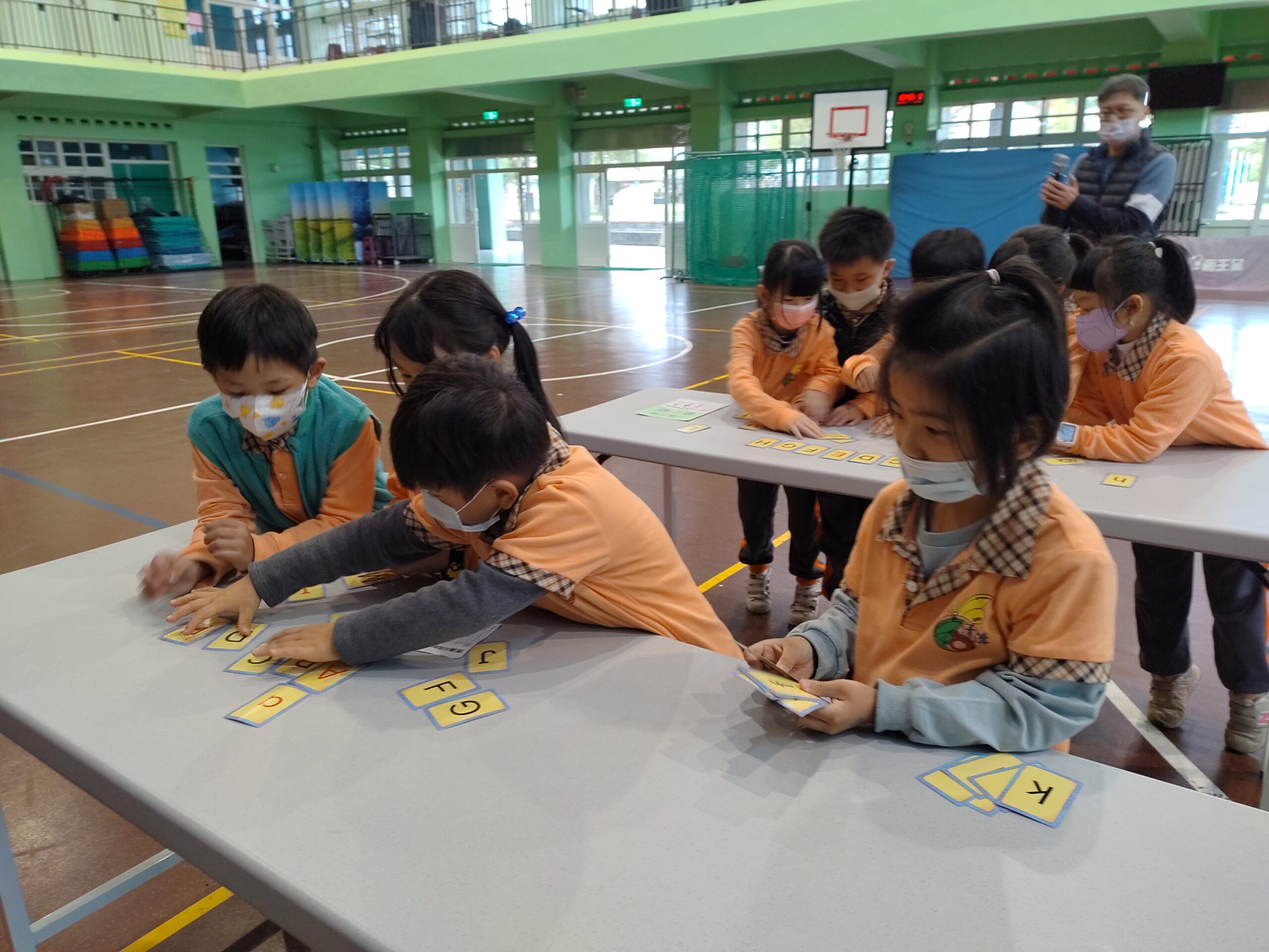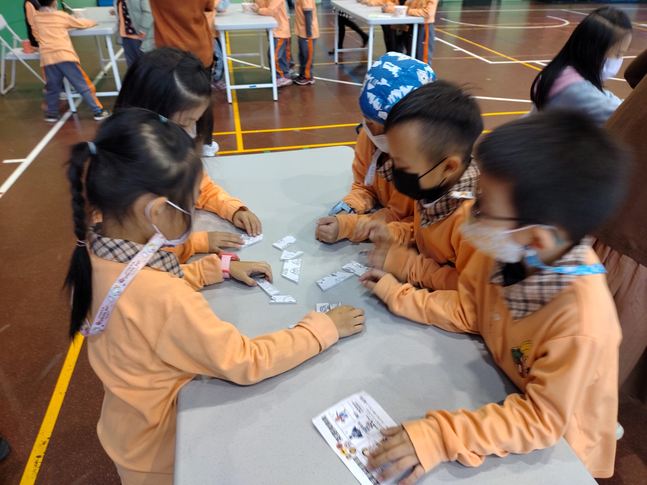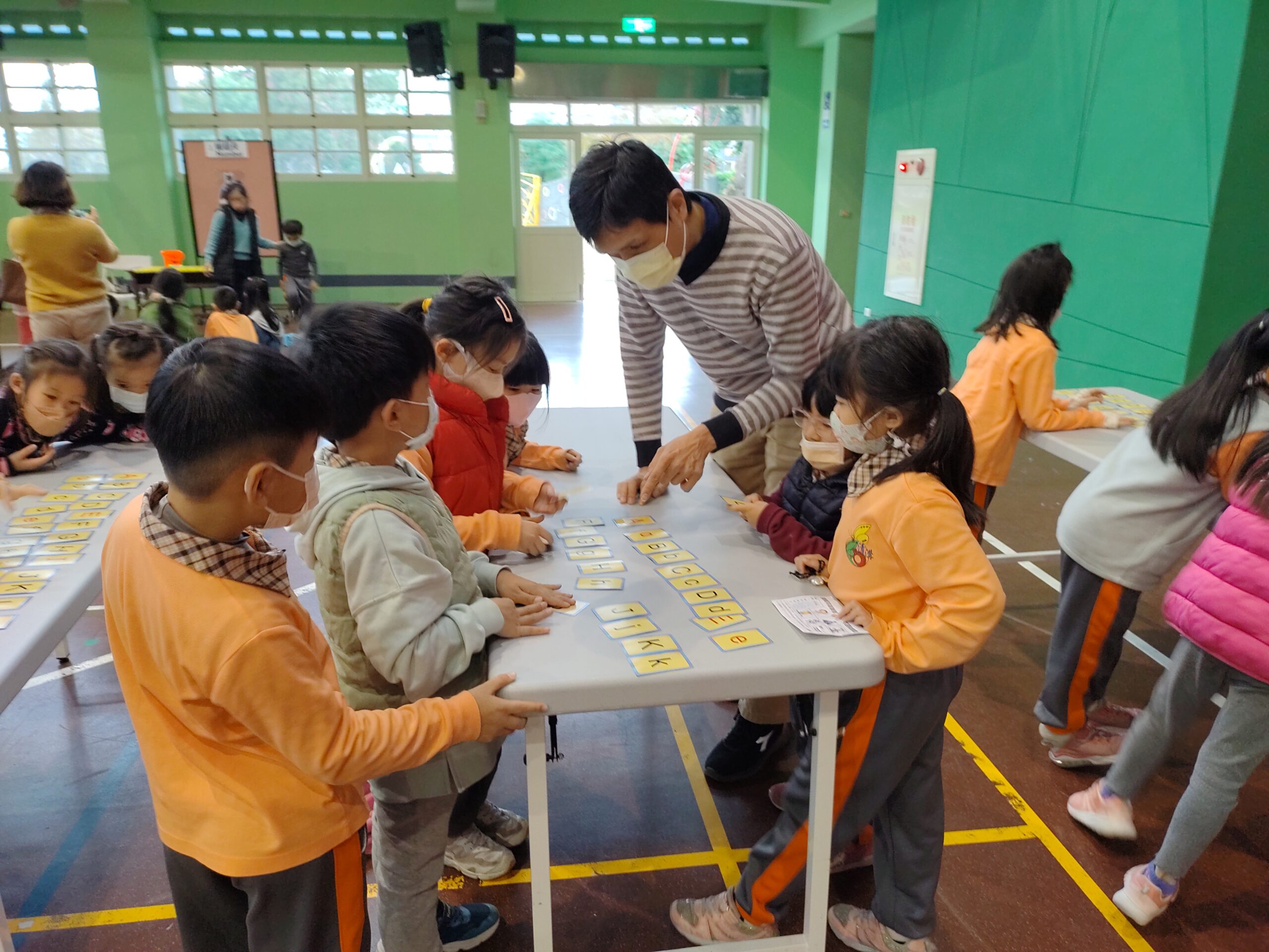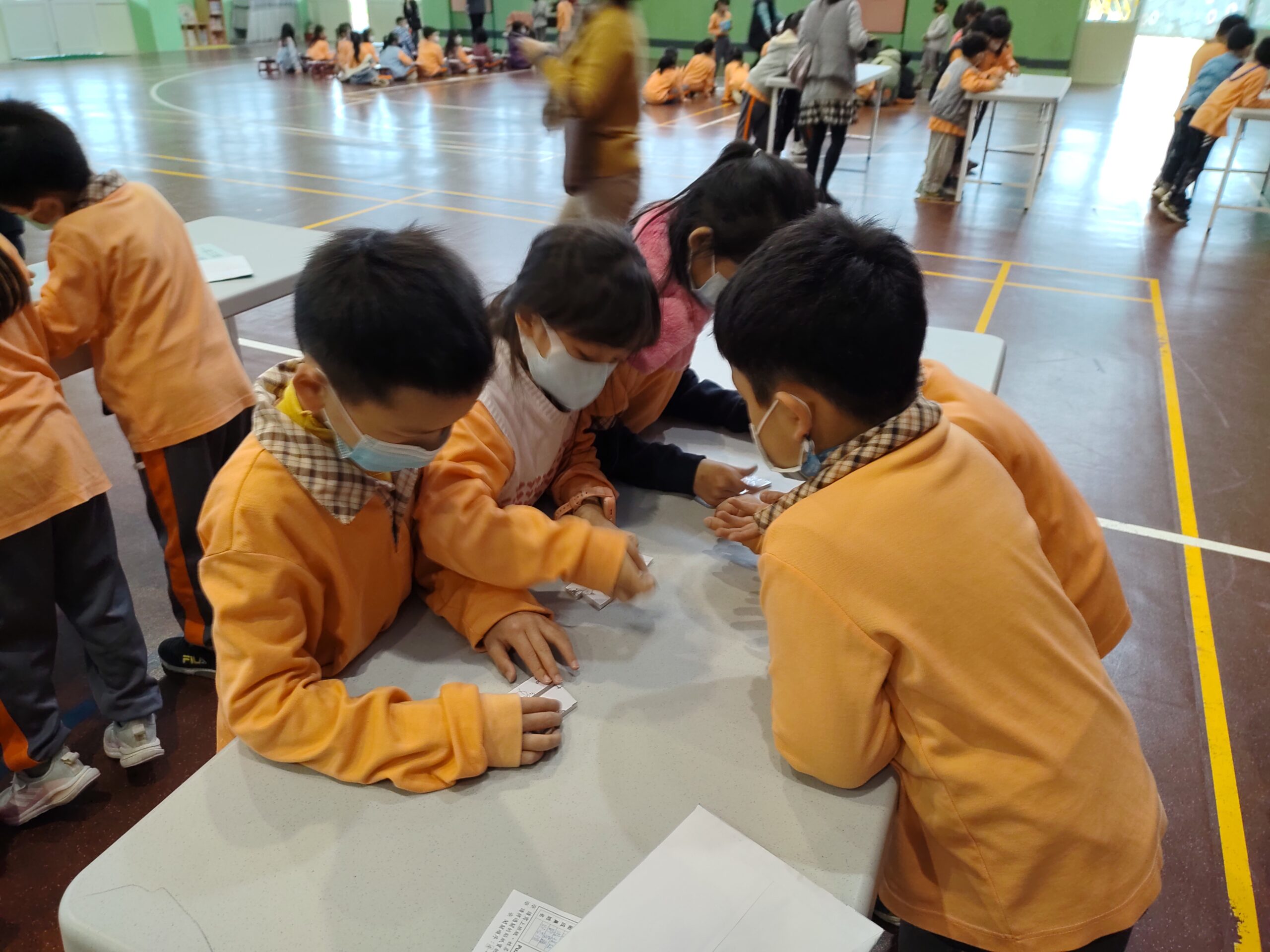 今天下午,全校一年級小朋友在體育館參加好玩的英語闖關活動,活動共分五關,第一關「I can write」,在小白板上寫出正確的大小寫字母、第二關「Number」,每人擲骰子,並說出正確的數字、第三關「Fun ABC」, 排出大寫及小寫字母的順序,再一起唸出來、第四關「Puzzle and Say」, 小組一起拼拼圖,再說出圖片名稱、第五關「Listen and Pick」, 老師唸發音,小朋友用筷子將字母從桶子中夾出。小朋友平時英語課用心學習,在這次活動都順利過關,得到點數1點,此外,我們班第五組的小朋友很幸運,抽到最多點數,得到學校的小獎品。今天玩得真開心!。希望寓教於樂的活動,能讓孩子們更喜歡英語!