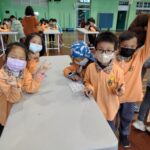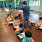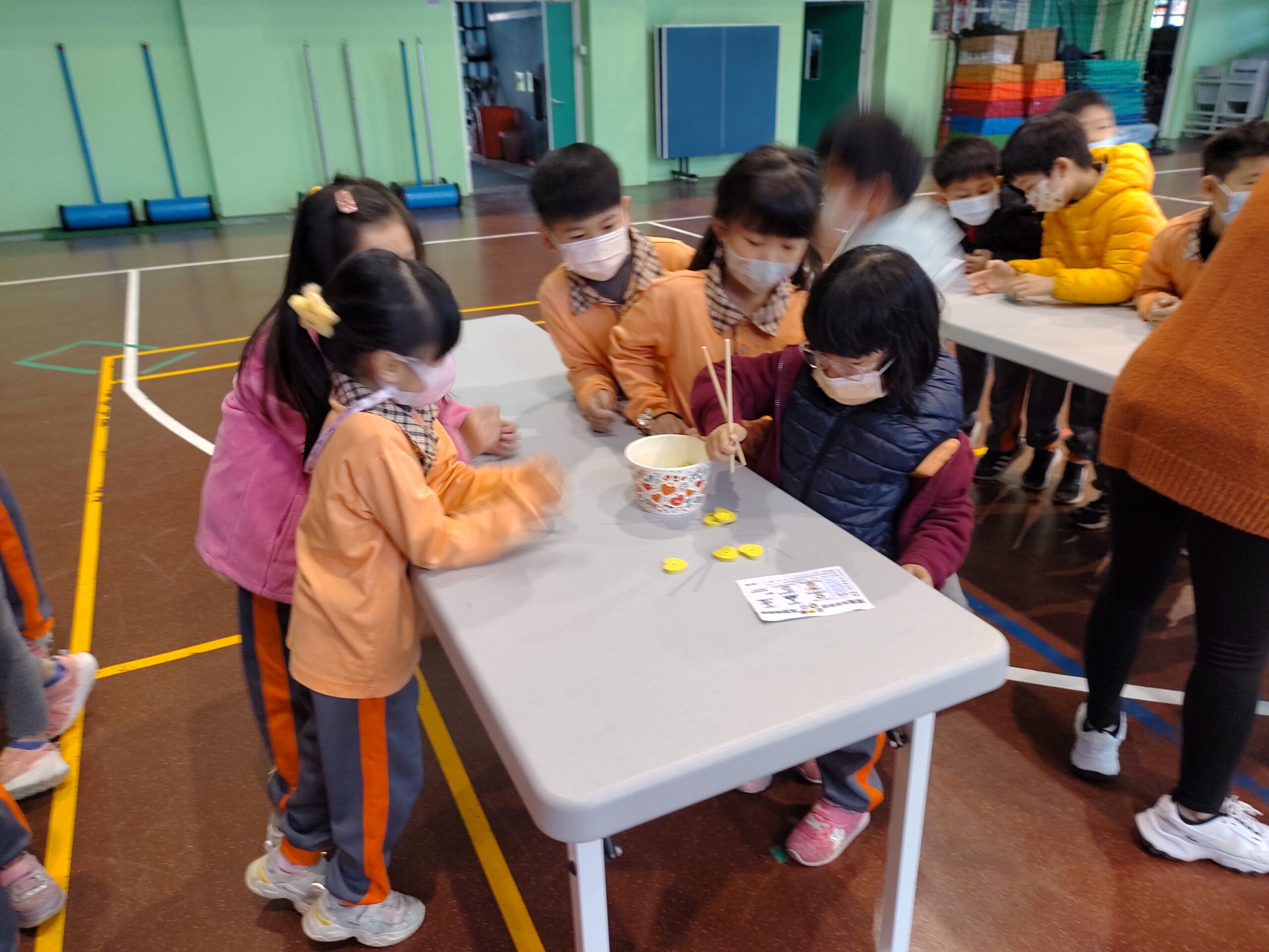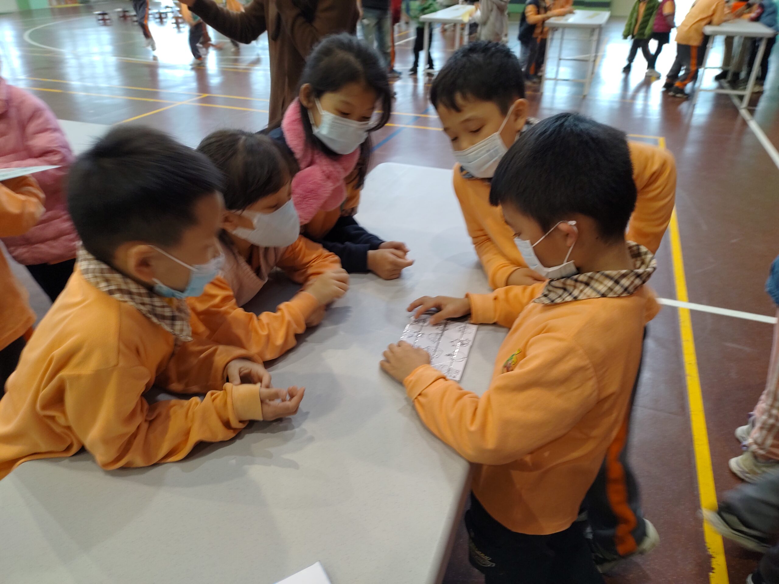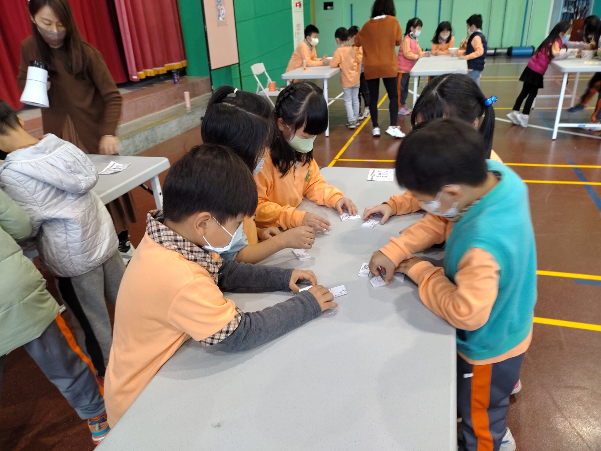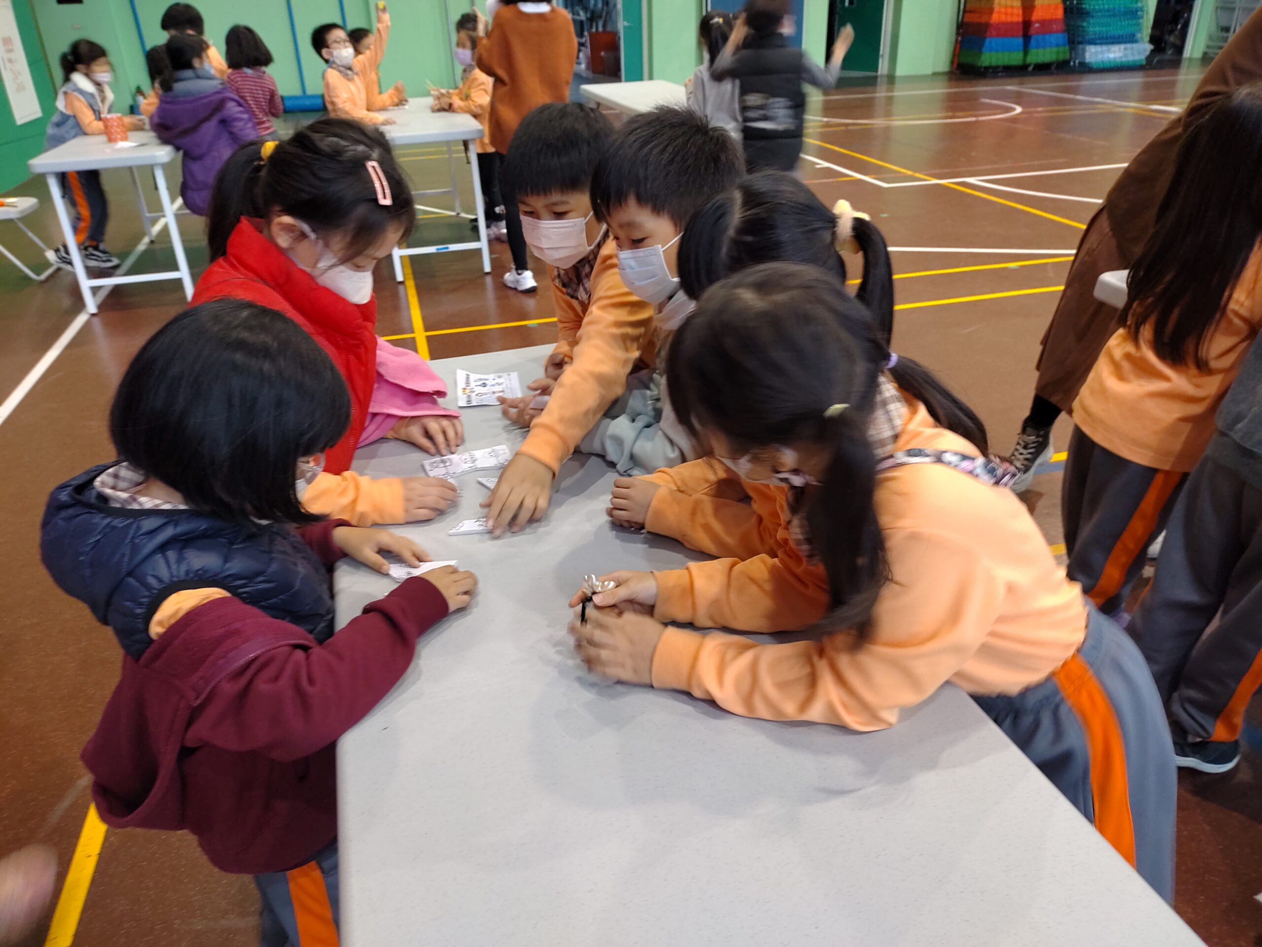 今天下午,全校一年級小朋友在體育館參加好玩的英語闖關活動,活動共分五關,第一關「I can write」,在小白板上寫出正確的大小寫字母、第二關「Number」,每人擲骰子,並說出正確的數字、第三關「Fun ABC」, 排出大寫及小寫字母的順序,再一起唸出來、第四關「Puzzle and Say」, 小組一起拼拼圖,再說出圖片名稱、第五關「Listen and Pick」, 老師唸發音,小朋友用筷子將字母從桶子中夾出。小朋友平時英語課用心學習,在這次活動都順利過關,得到點數1點,此外,我們班第五組的小朋友很幸運,抽到最多點數,得到學校的小獎品。今天玩得真開心!。希望寓教於樂的活動,能讓孩子們更喜歡英語!