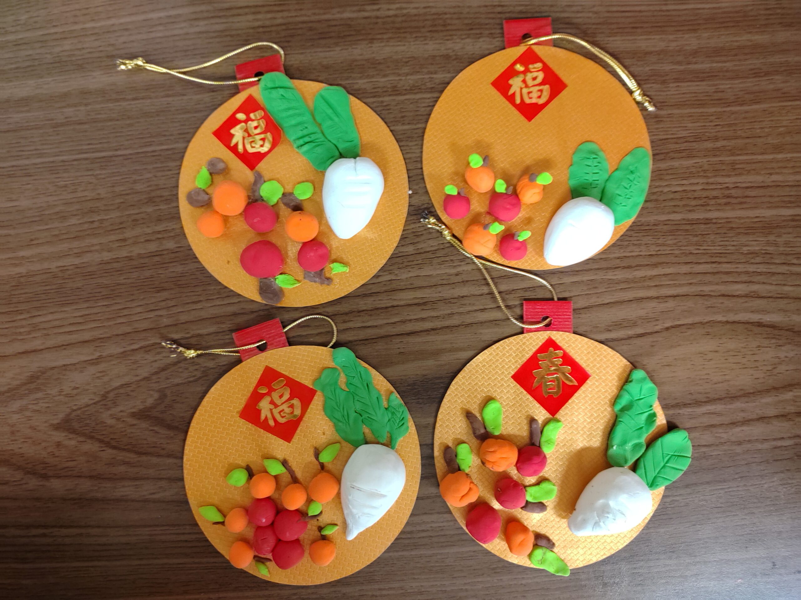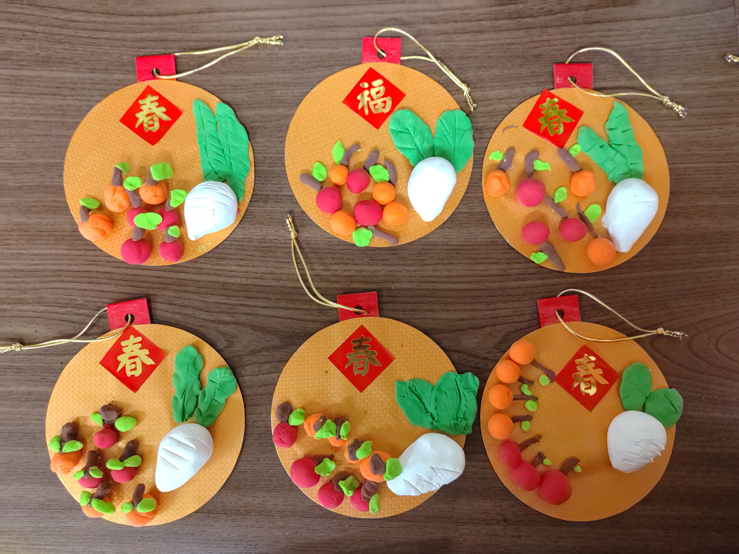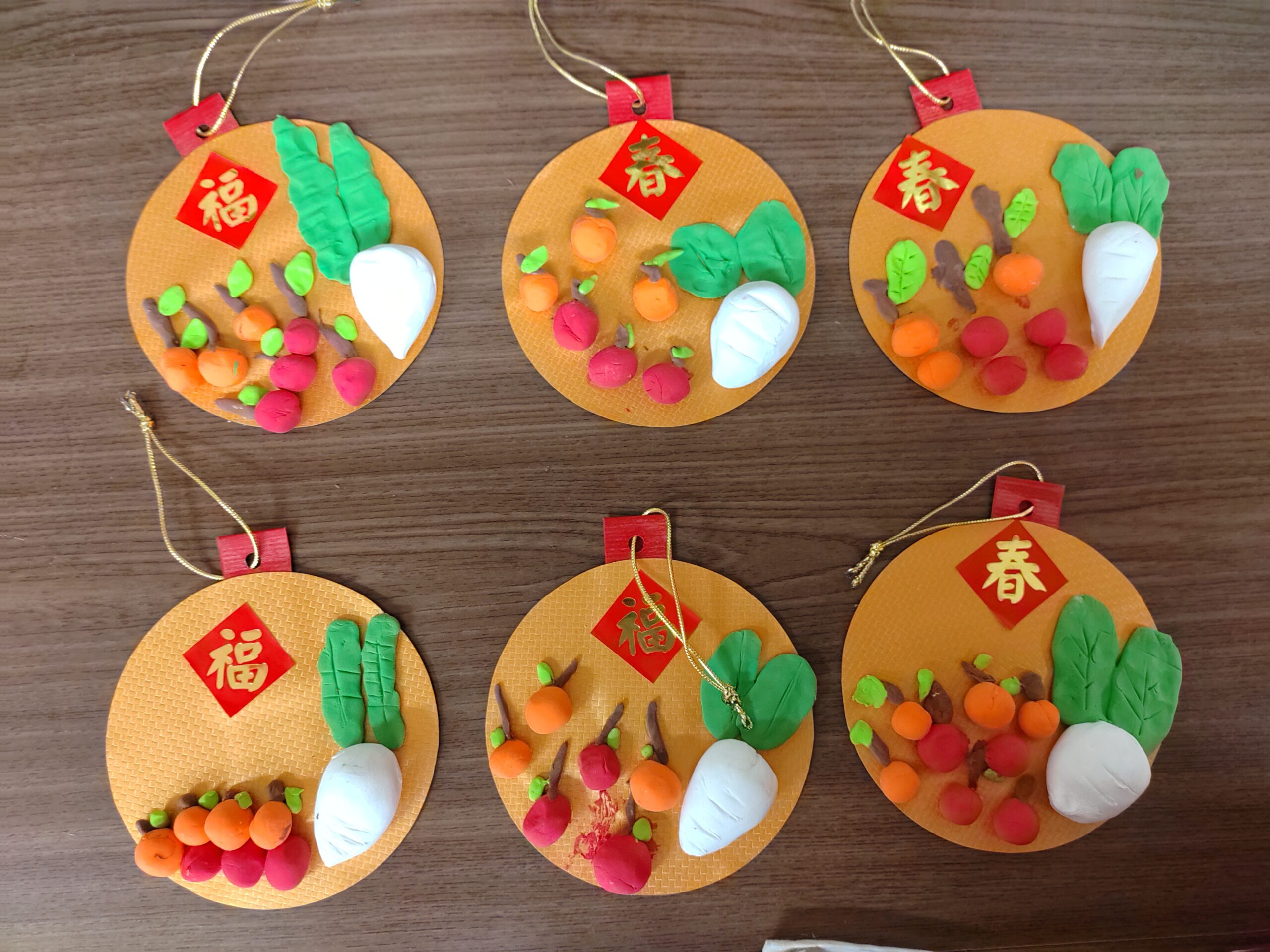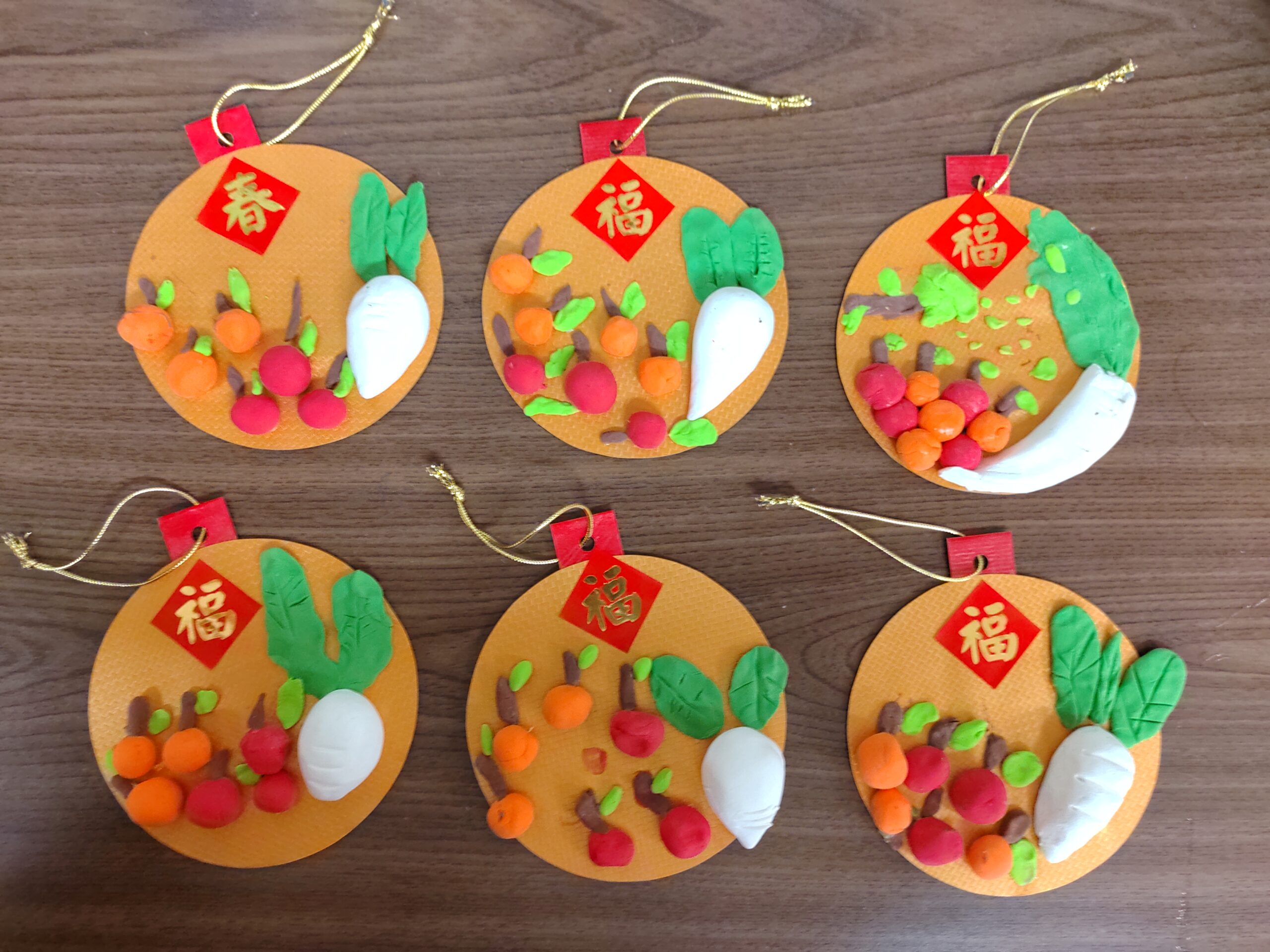 新年快樂吊飾2022 年 12 月 1 日 林冠妙這個星期二社團活動,嘉琪老師教小朋友用輕質土做「新年快樂吊飾」,小朋友用輕質土做菜頭、橘子,充滿過年好彩頭、大吉大利的佳節氣氛!今年過年,小朋友可以將吊飾掛在家中,增添家中的「年味」!