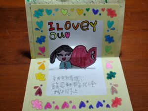 感謝卡–母親節快樂2023 年 5 月 11 日2023 年 5 月 11 日 林冠妙這個星期天就是母親節,小朋友製作母親卡,感謝媽媽平日的照顧與關懷,小朋友還製作鑰匙圈、康乃馨,希祝福辛苦的媽媽們,母親節快樂!