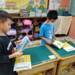 製作小書2023 年 5 月 25 日2023 年 5 月 25 日 林冠妙生活課讓小朋友自己設計小書,有的小朋友設計圖鑑書,有的小朋友改編故事,有的小朋友自己設計故事內容,還有的小朋把生活中的事情寫成故事,每本書都是獨一無二的佳作! 今天班上舉辦「小書分享活動」,小朋友欣賞同學的作品,並為心目中的優良作品在集點卡上貼上愛心貼紙,小朋友用心閱讀同學的作品,大家都有很多收穫!