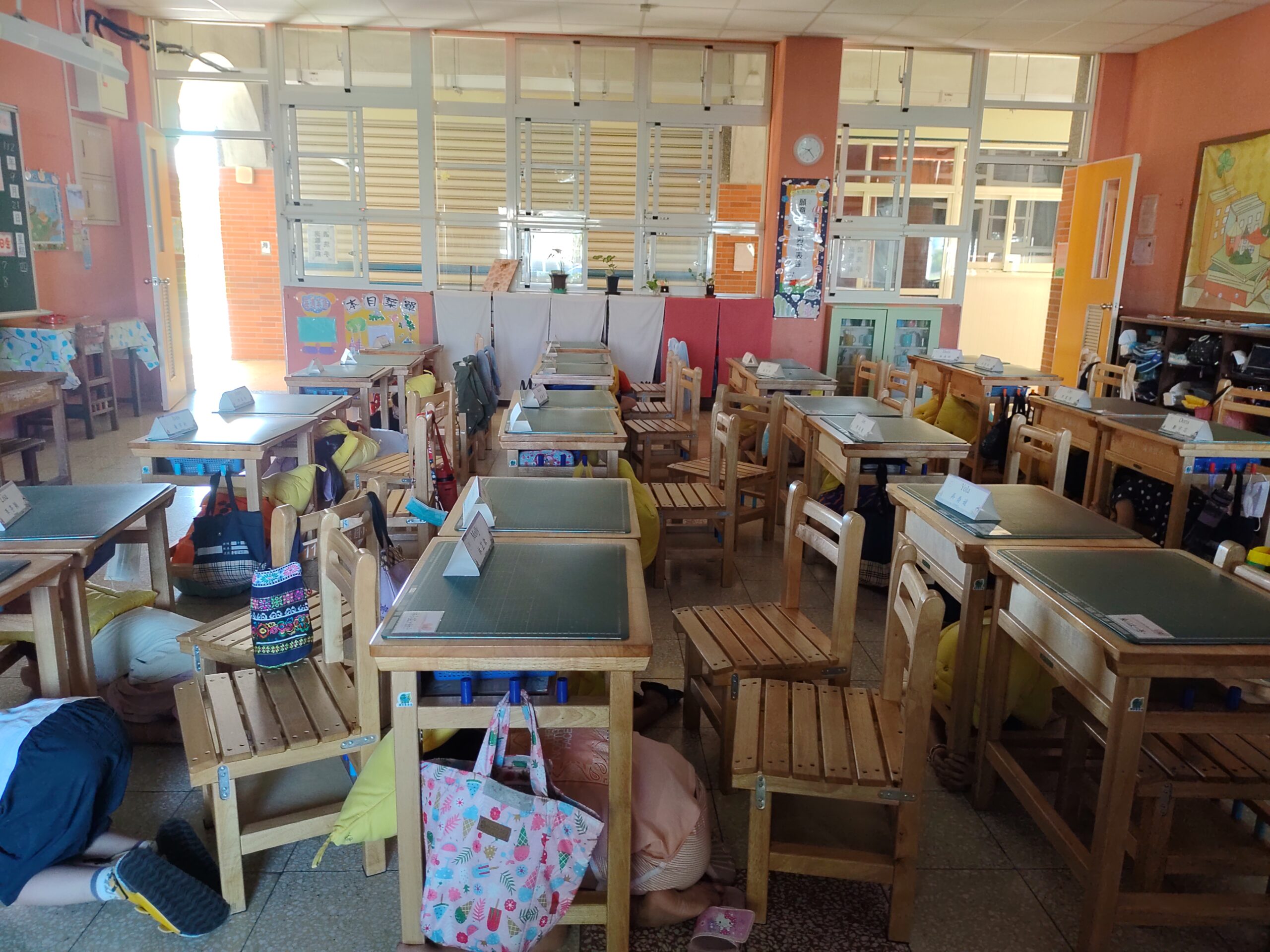 全國防災演練2023 年 9 月 21 日 林冠妙九月二十一日早上九點二十一分,是全國的防災演練,小朋友聽到警報聲,立刻安靜的躲在桌子底下「趴下、掩護、穩住」,等廣播請大家疏散時,小朋友做到「不語、不推、不跑」,很有秩序的到教室外的草地避難。今天大家都表現得很好,將防災的步驟化為行動牢記,真棒!