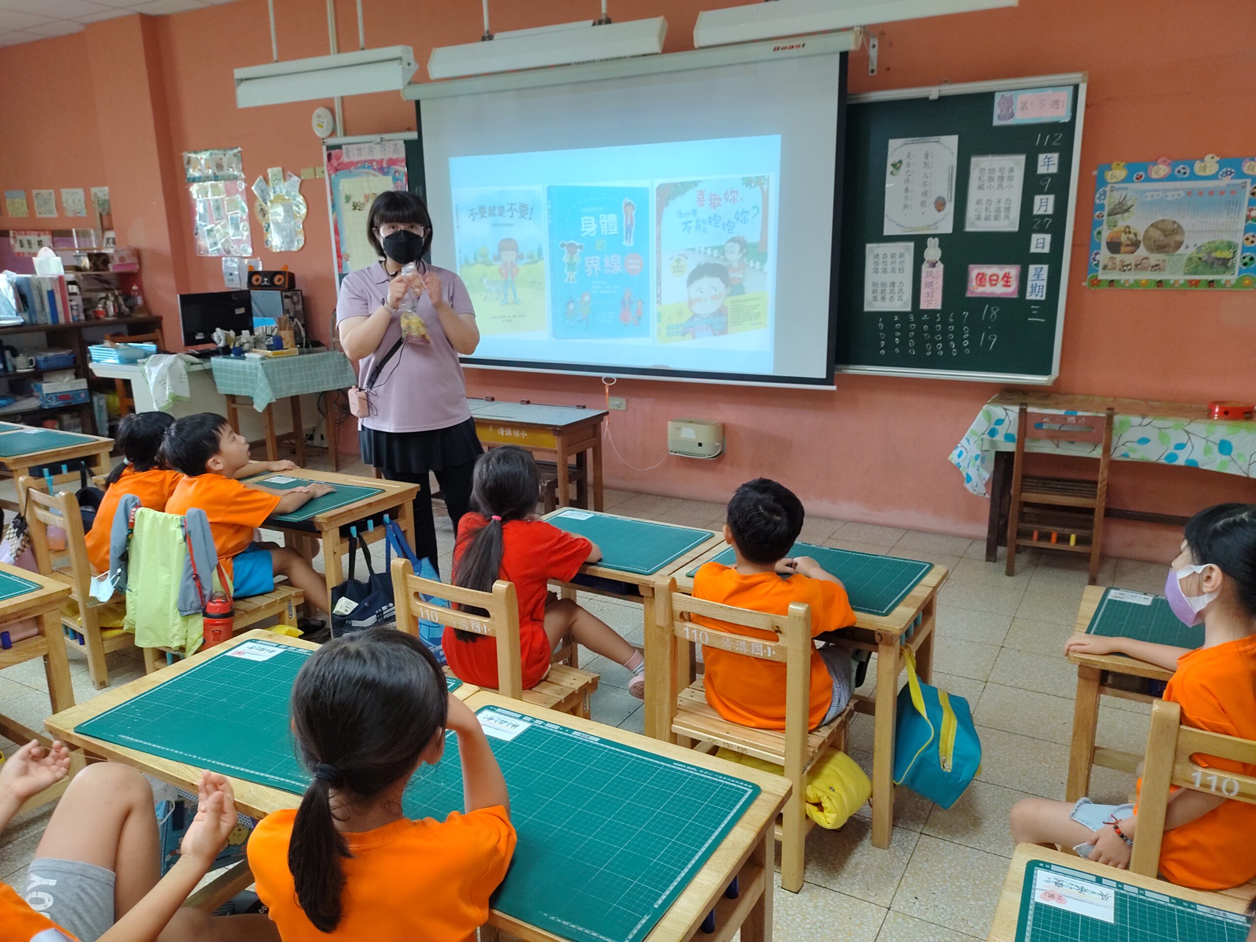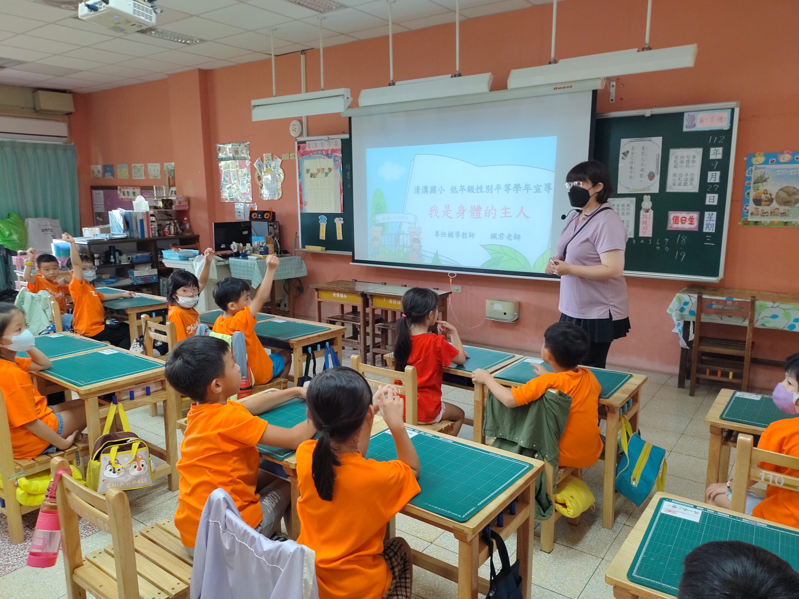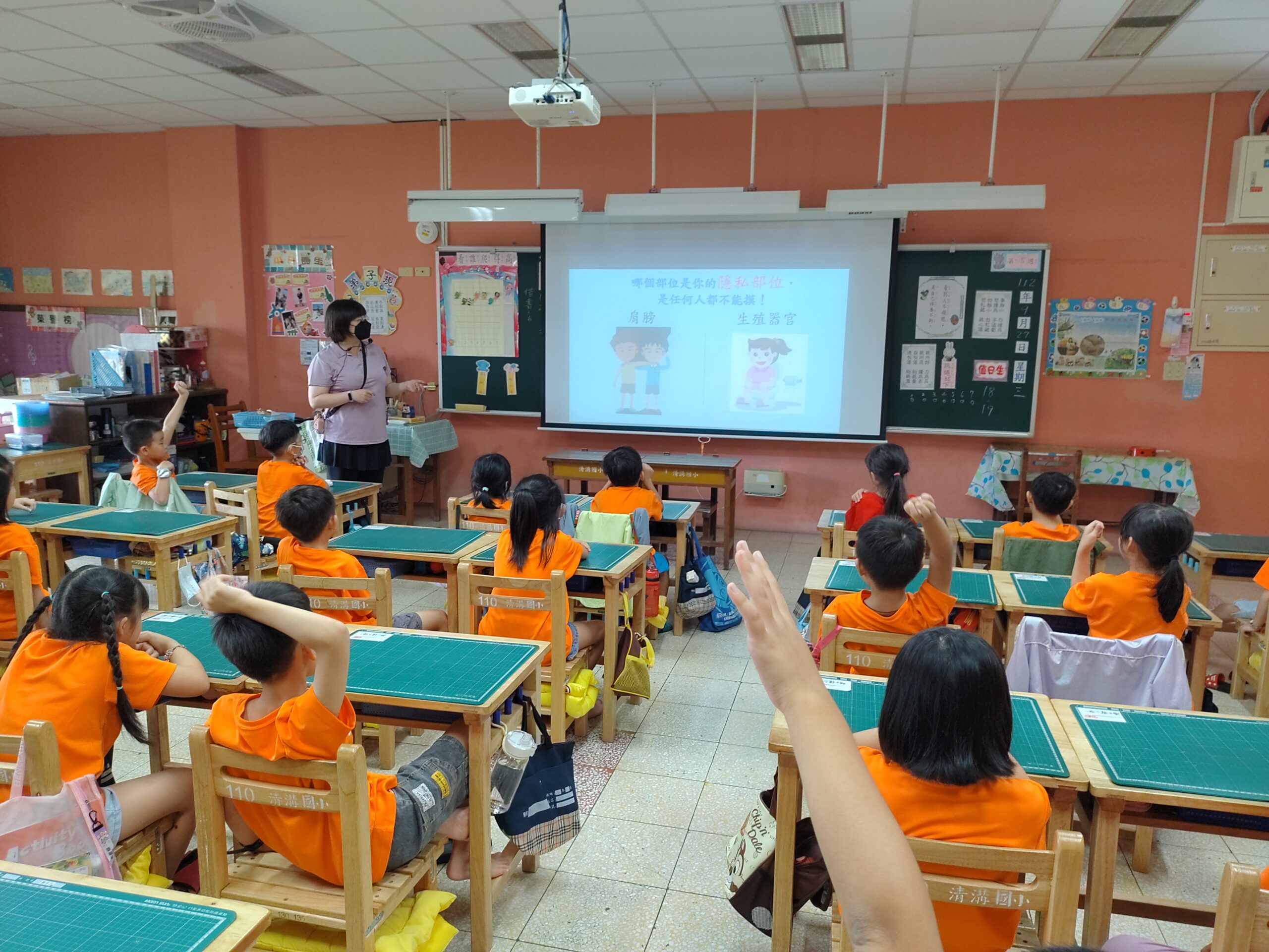 輔導課–我是身體的主人2023 年 9 月 27 日 林冠妙學校輔導老師–姵君老師,今天上一堂「我是身體的主人」的課程,從教小朋友了解自己、尊重別人的身體界線,到說明如何保護身體的隱私部位,小朋友很專心的聽、很熱烈的回應,收穫很多,謝謝姵君老師!