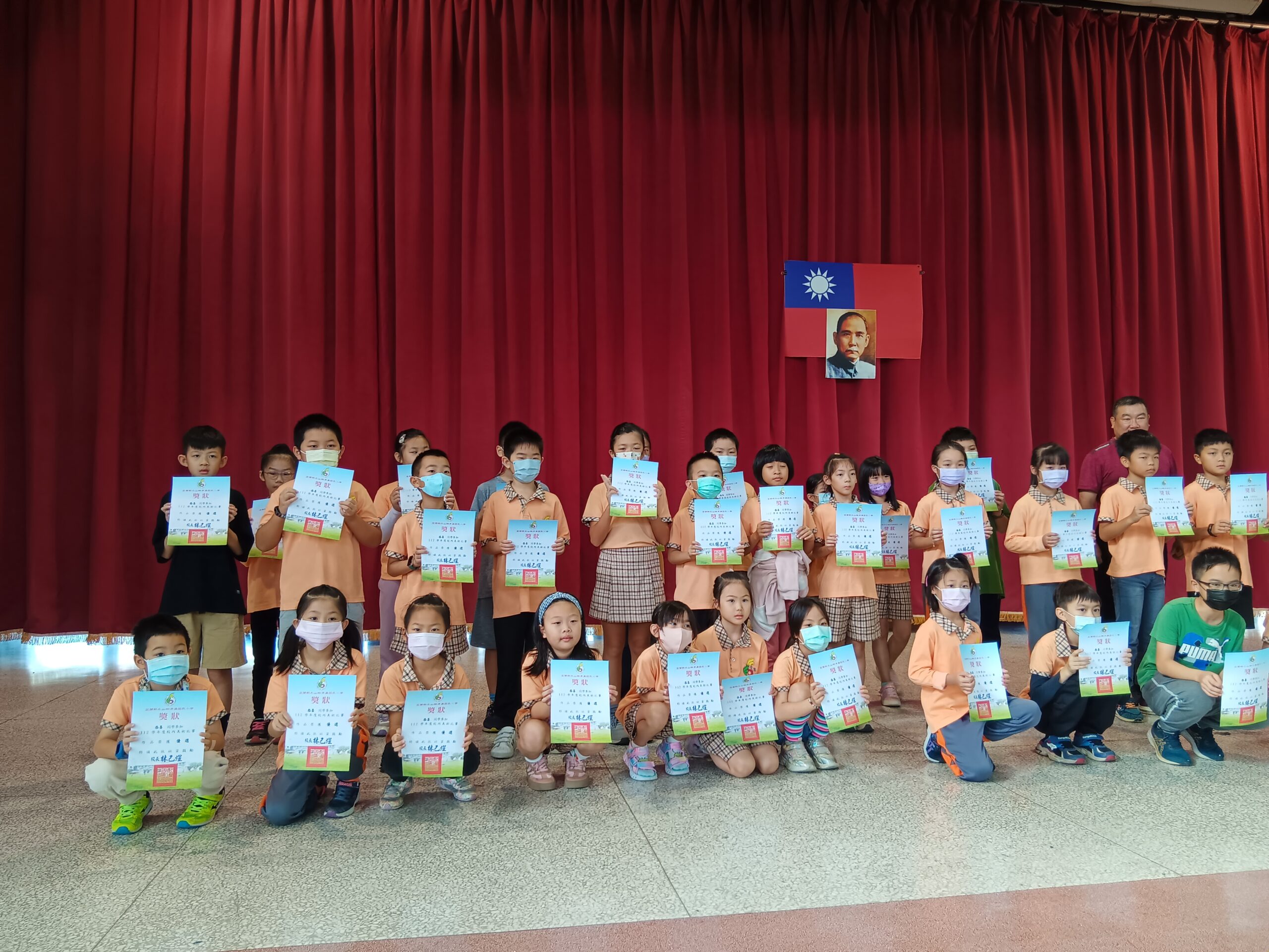 頒發扯鈴比賽和閱讀小學士2023 年 10 月 31 日 林冠妙今天學生朝會,學校頒發扯鈴比賽獎項,易廷和煜喆榮獲拋鈴比賽第一名,兩個小朋友都是這學期才開始參與扯鈴活動,初試啼聲就獲獎,真是太厲害啦!今天還頒發閱讀小學士獎狀,承軒、毅先、苡樂完成一百本書的記錄,恭喜三位獲獎同學!