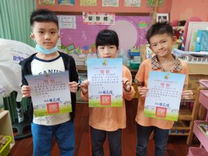 校內美術比賽獲獎同學2023 年 10 月 27 日 林冠妙這學期校內美術比賽,班上有許多小朋友參賽,這週學生朝會公佈比賽結果,我們班有五位小朋友獲獎,分別是煜喆、亮穎、宥安、禹彤、品希,恭喜這幾位小畫家,希望以後有繪畫方面的比賽,小朋友能繼續踴躍參加!