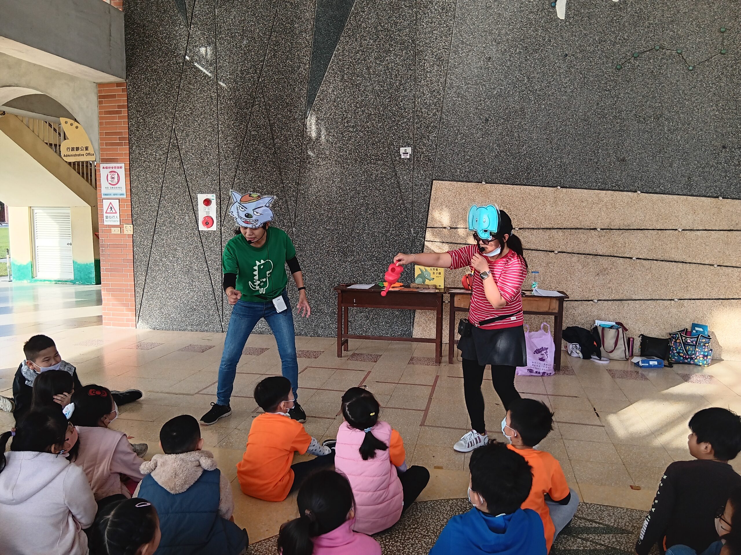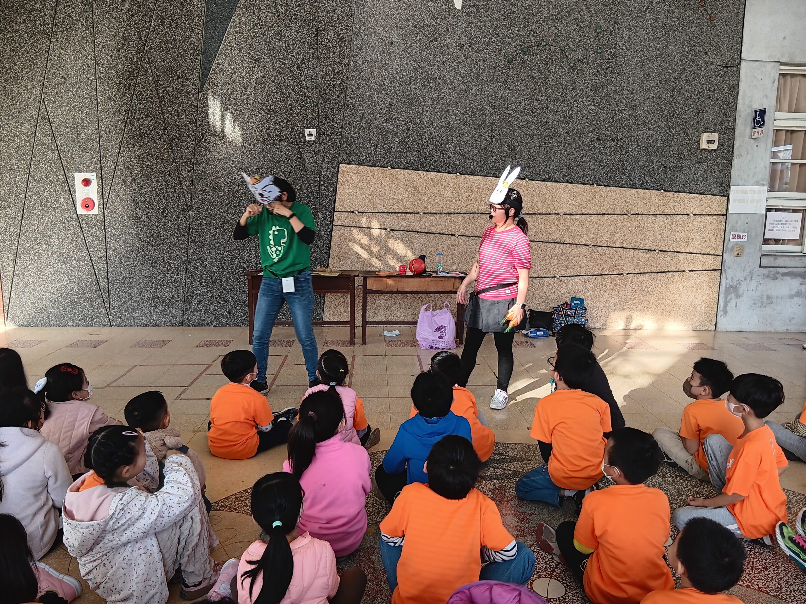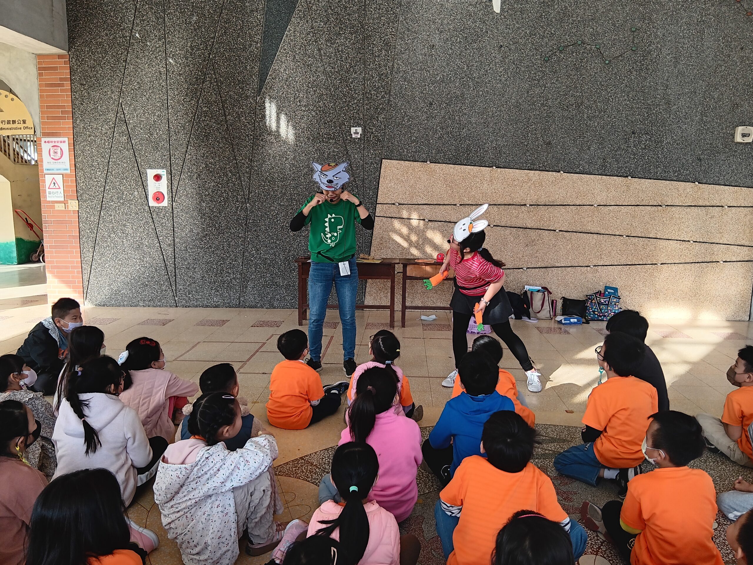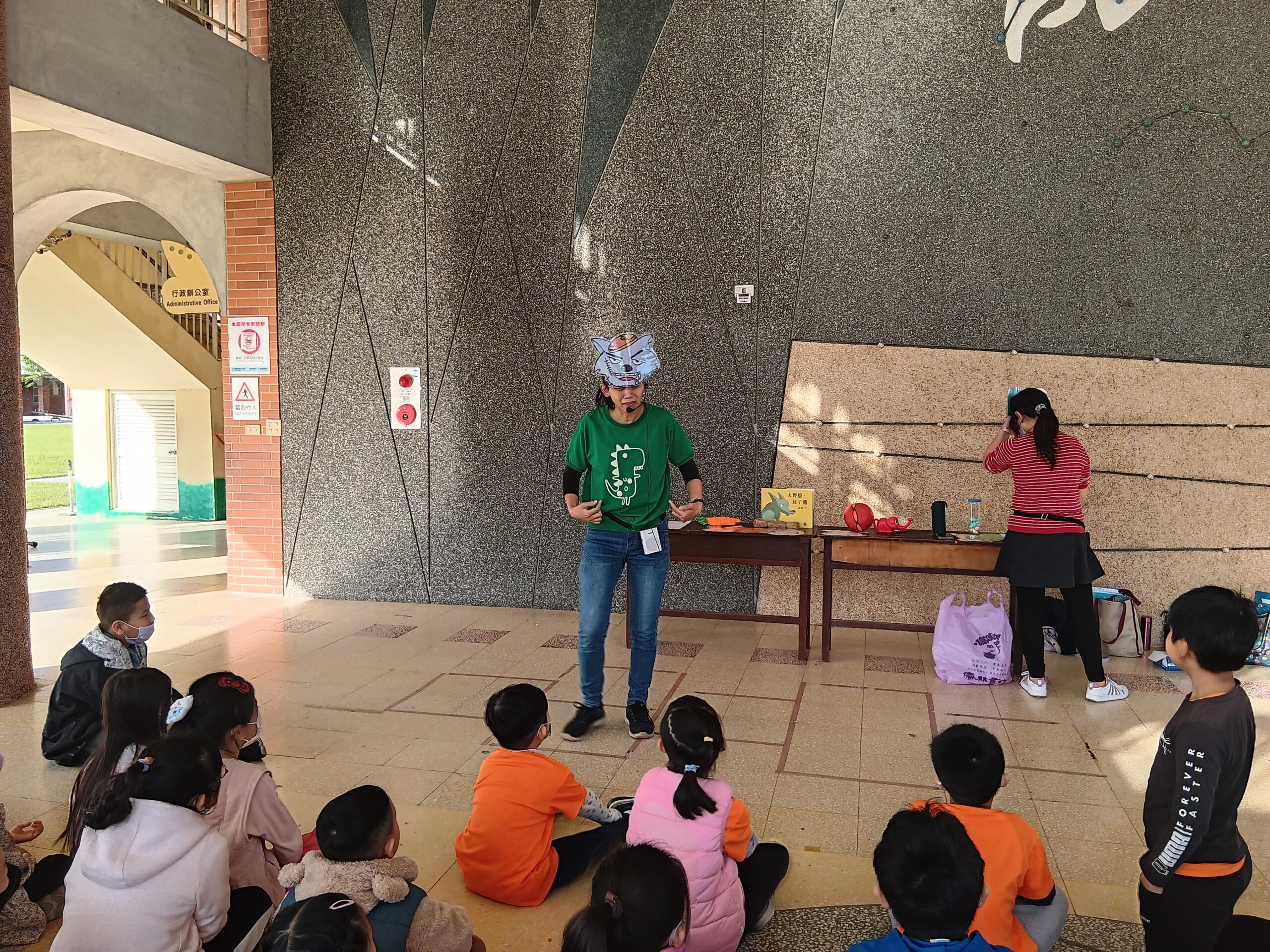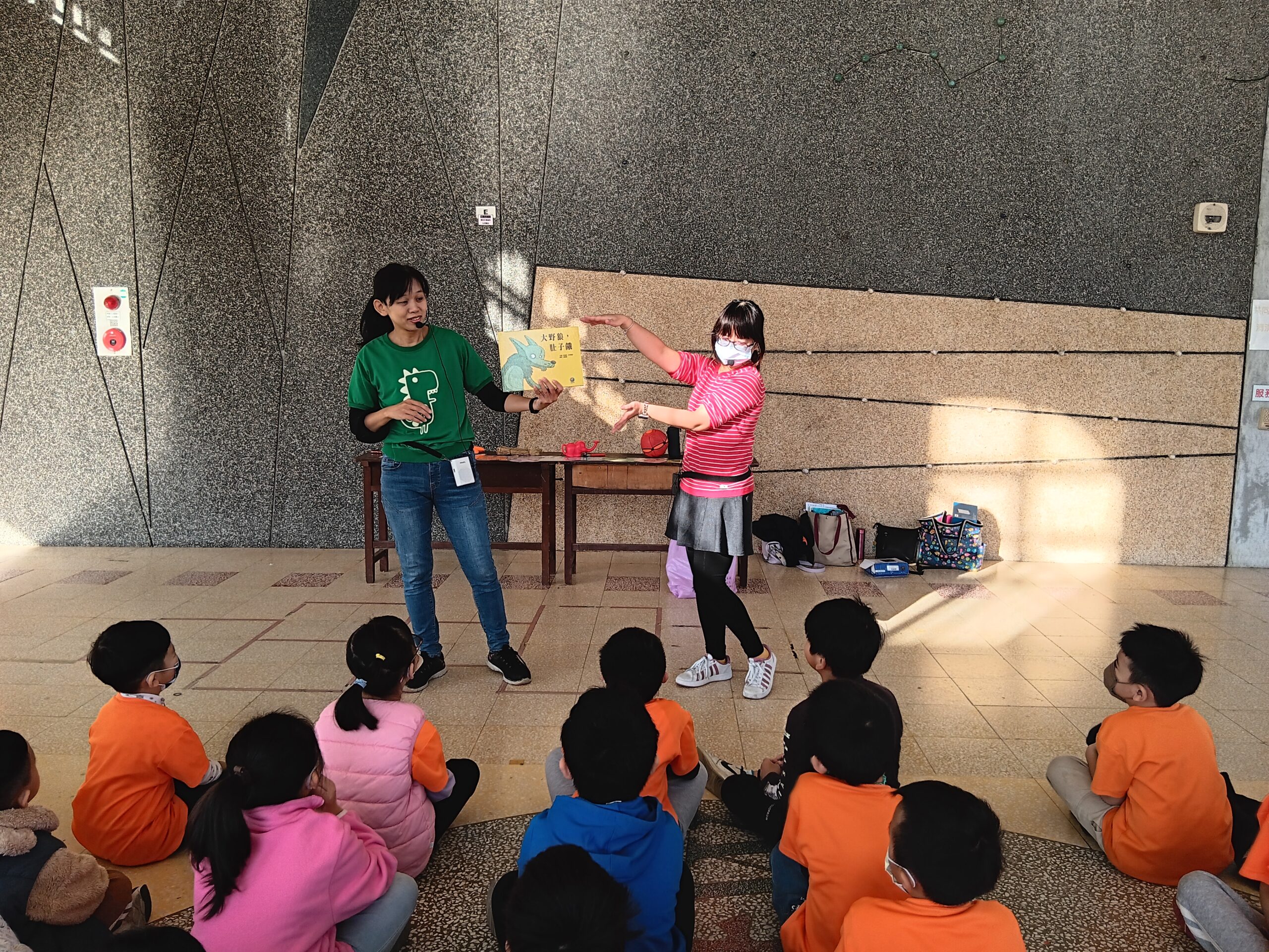 綠繪本姐姐說故事2023 年 11 月 22 日 林冠妙今天早上,綠繪本姐姐為二年級的小朋友說好聽的故事「大野狼,肚子餓」,大野狼因為人類破壞環境,讓牠沒有食物可吃,一路上遇到許多動物,但他們都不願幫助大野狼,最後,小白兔分享自己的紅蘿蔔,讓大野狼很感動。綠繪本姐姐說的故事都和生態保育、愛護地球的觀念相關,希望小朋友除了開心聽故事,還能身體力行愛護地球!