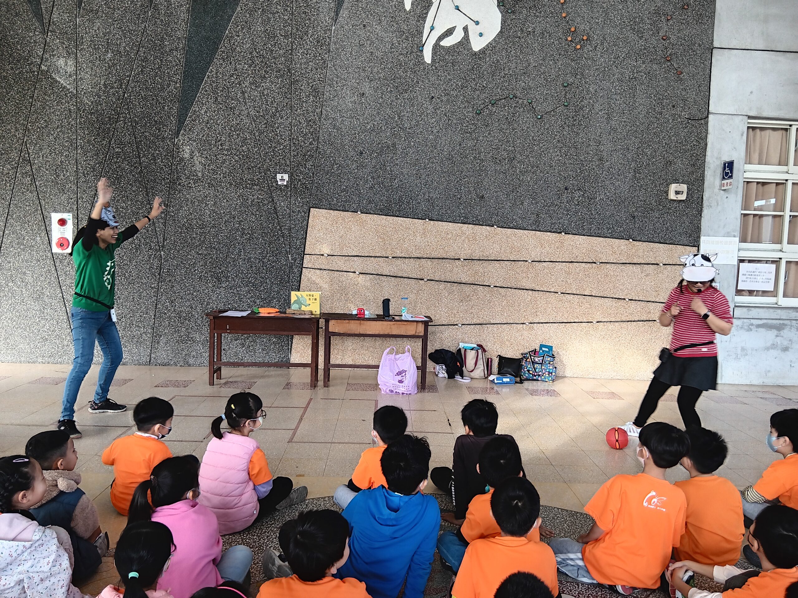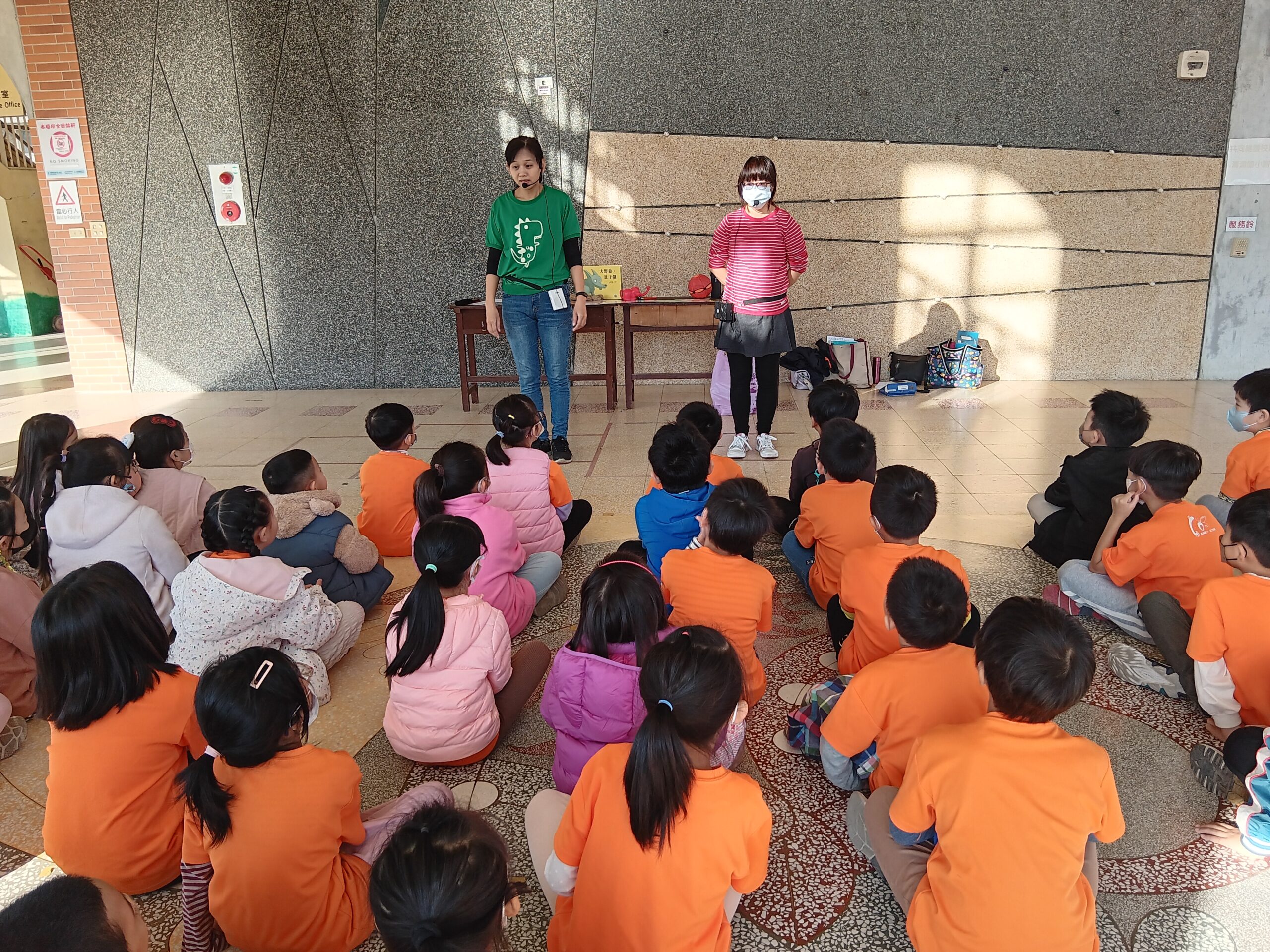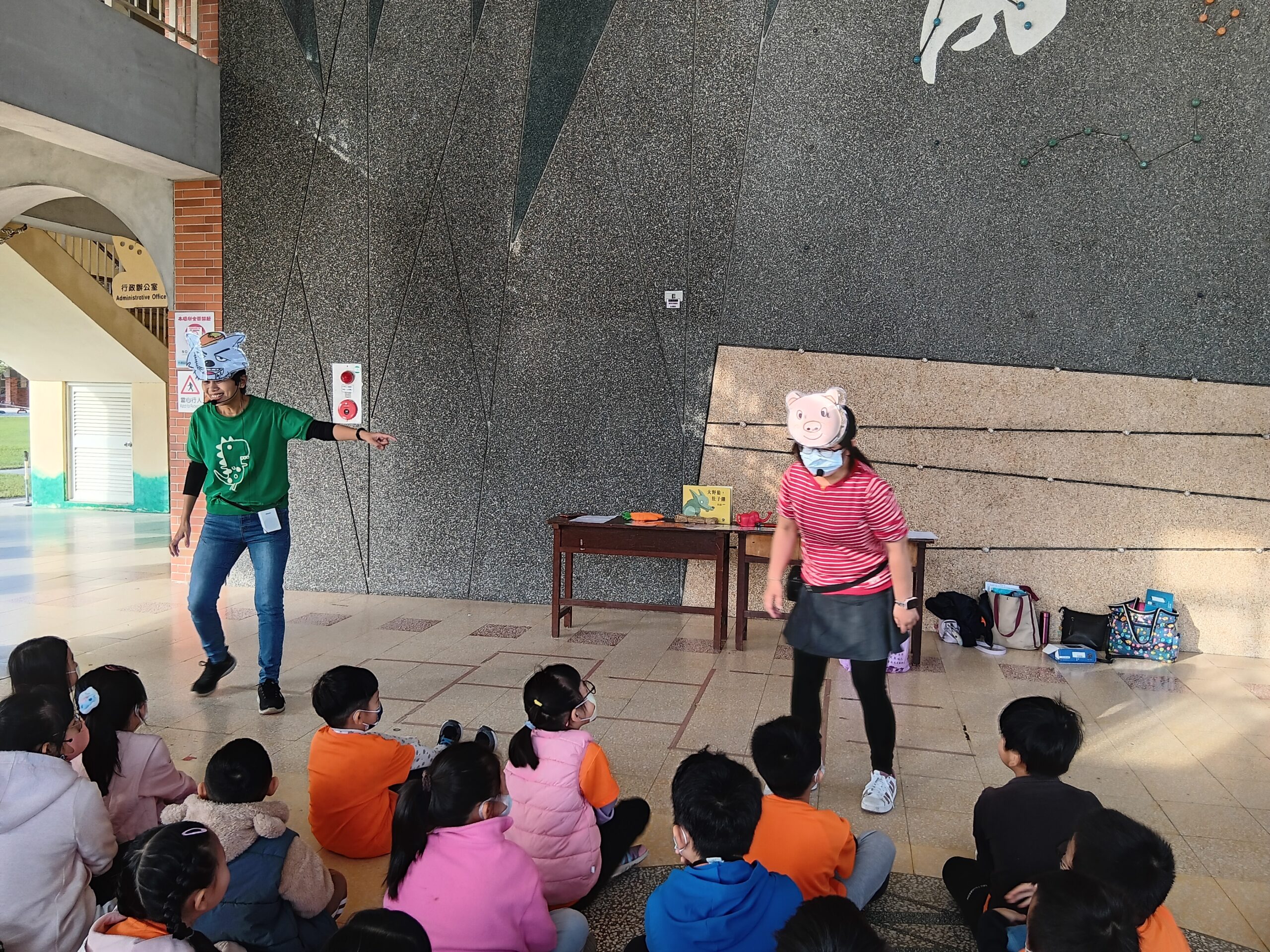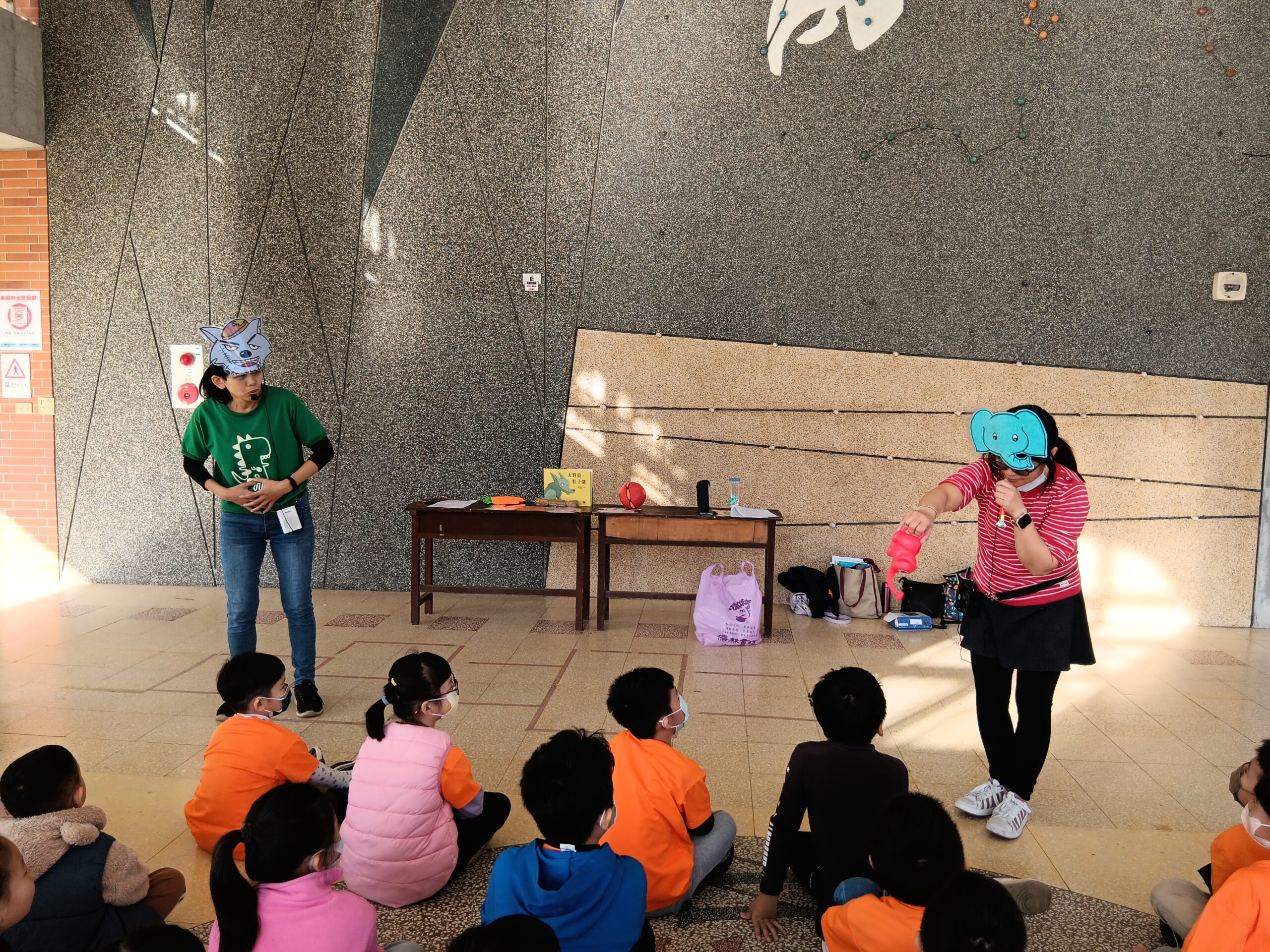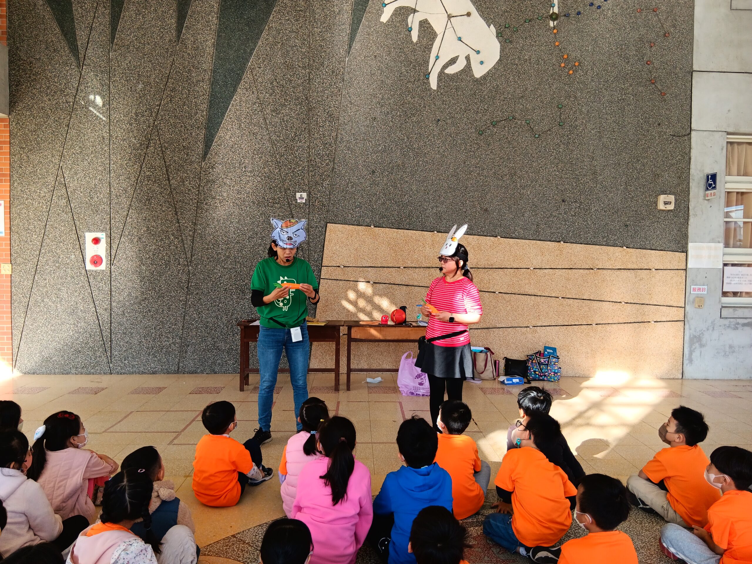 綠繪本姐姐說故事2023 年 11 月 22 日 林冠妙今天早上,綠繪本姐姐為二年級的小朋友說好聽的故事「大野狼,肚子餓」,大野狼因為人類破壞環境,讓牠沒有食物可吃,一路上遇到許多動物,但他們都不願幫助大野狼,最後,小白兔分享自己的紅蘿蔔,讓大野狼很感動。綠繪本姐姐說的故事都和生態保育、愛護地球的觀念相關,希望小朋友除了開心聽故事,還能身體力行愛護地球!