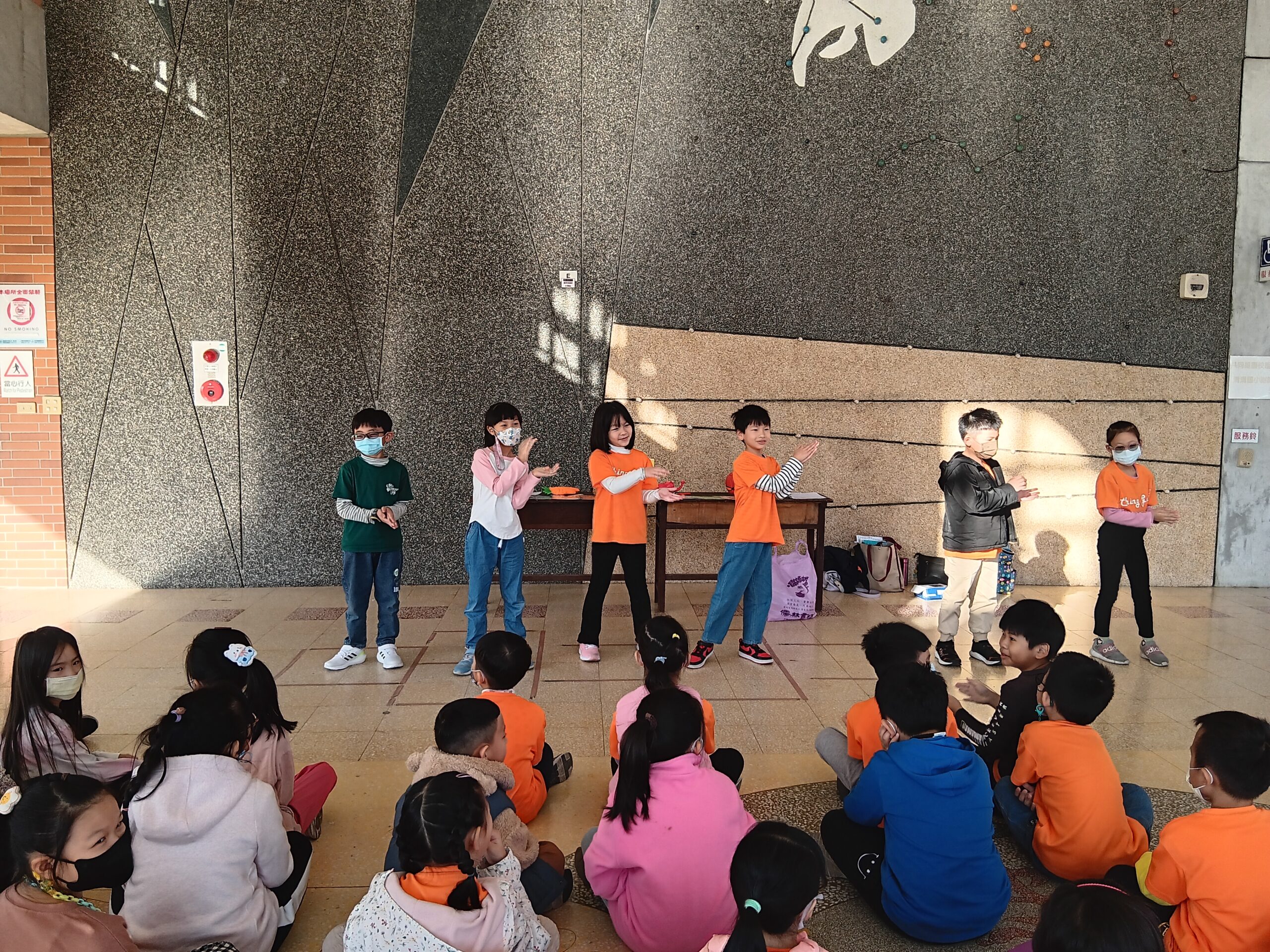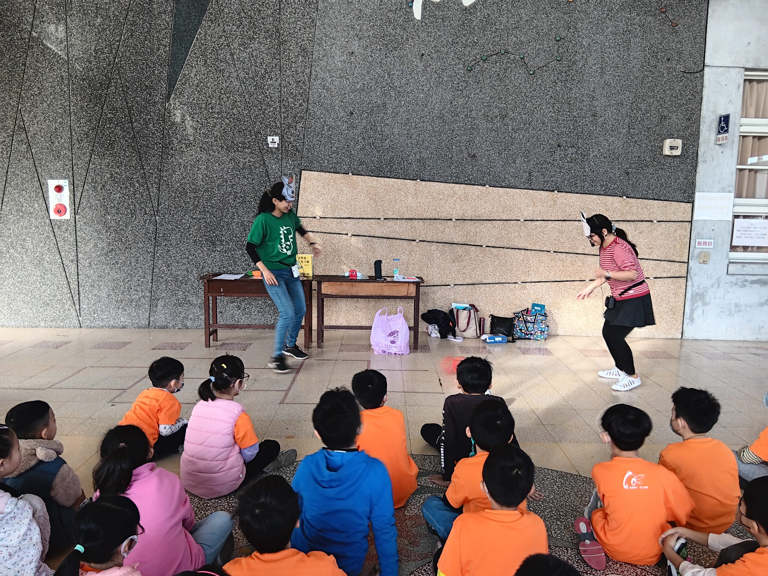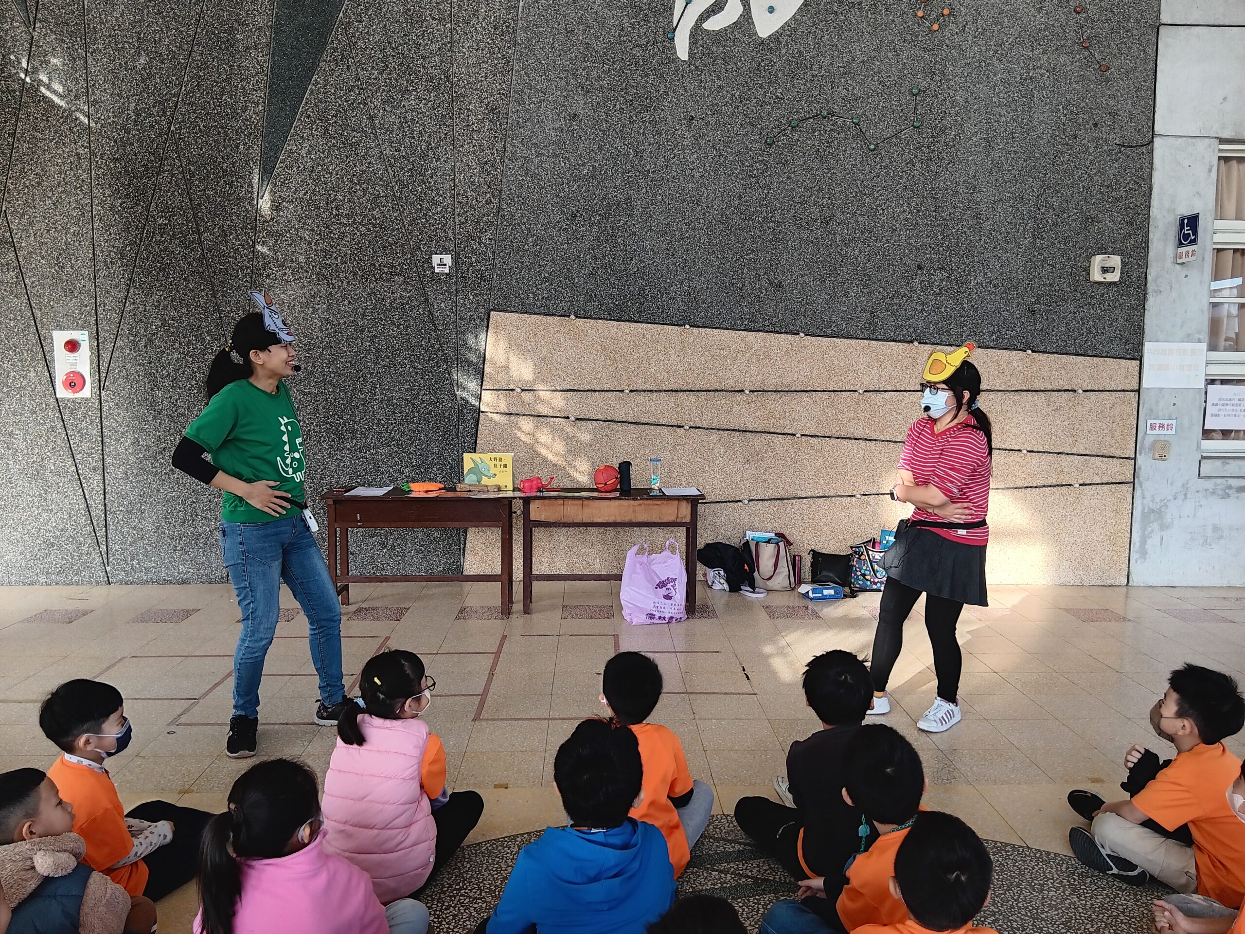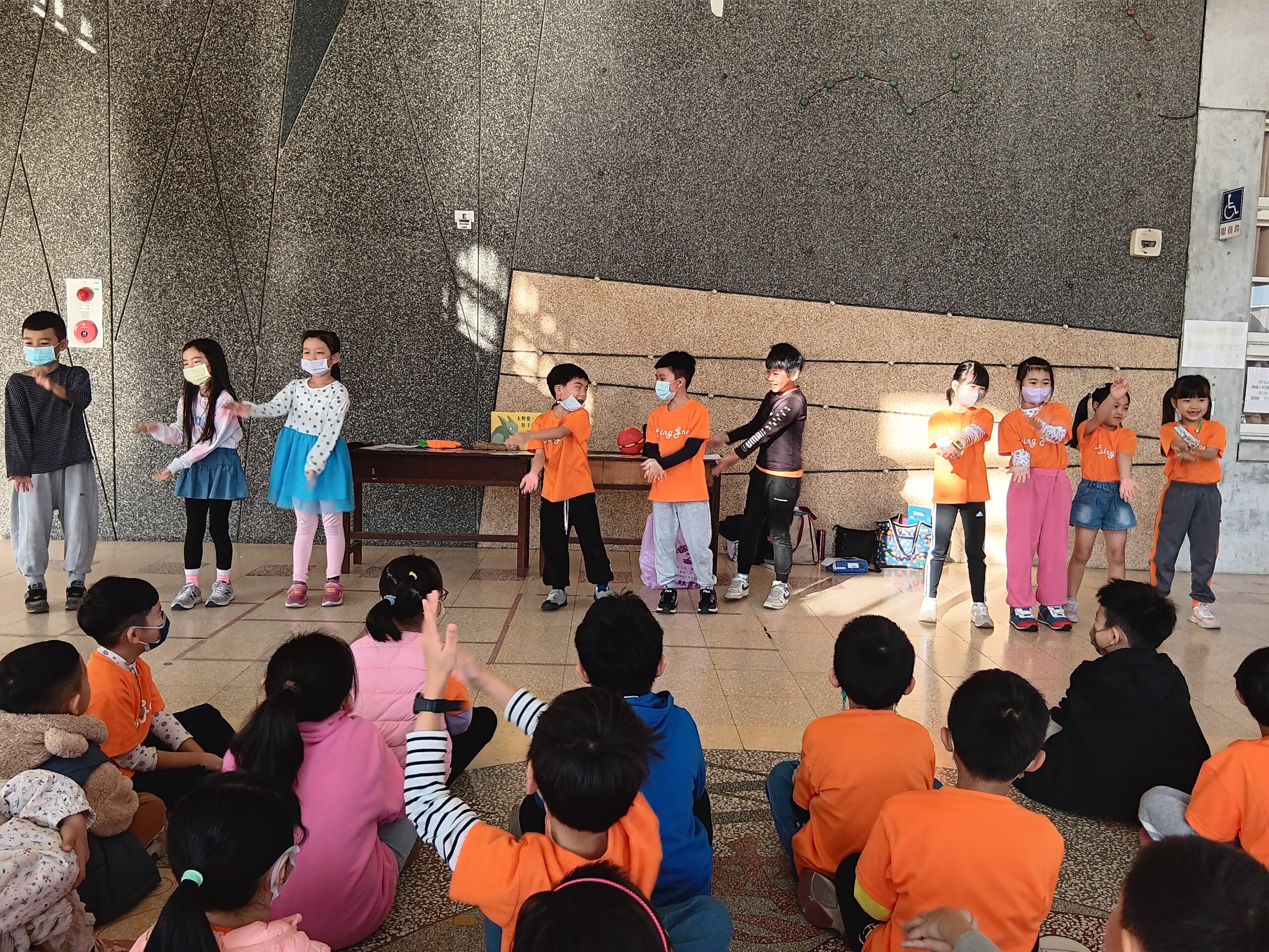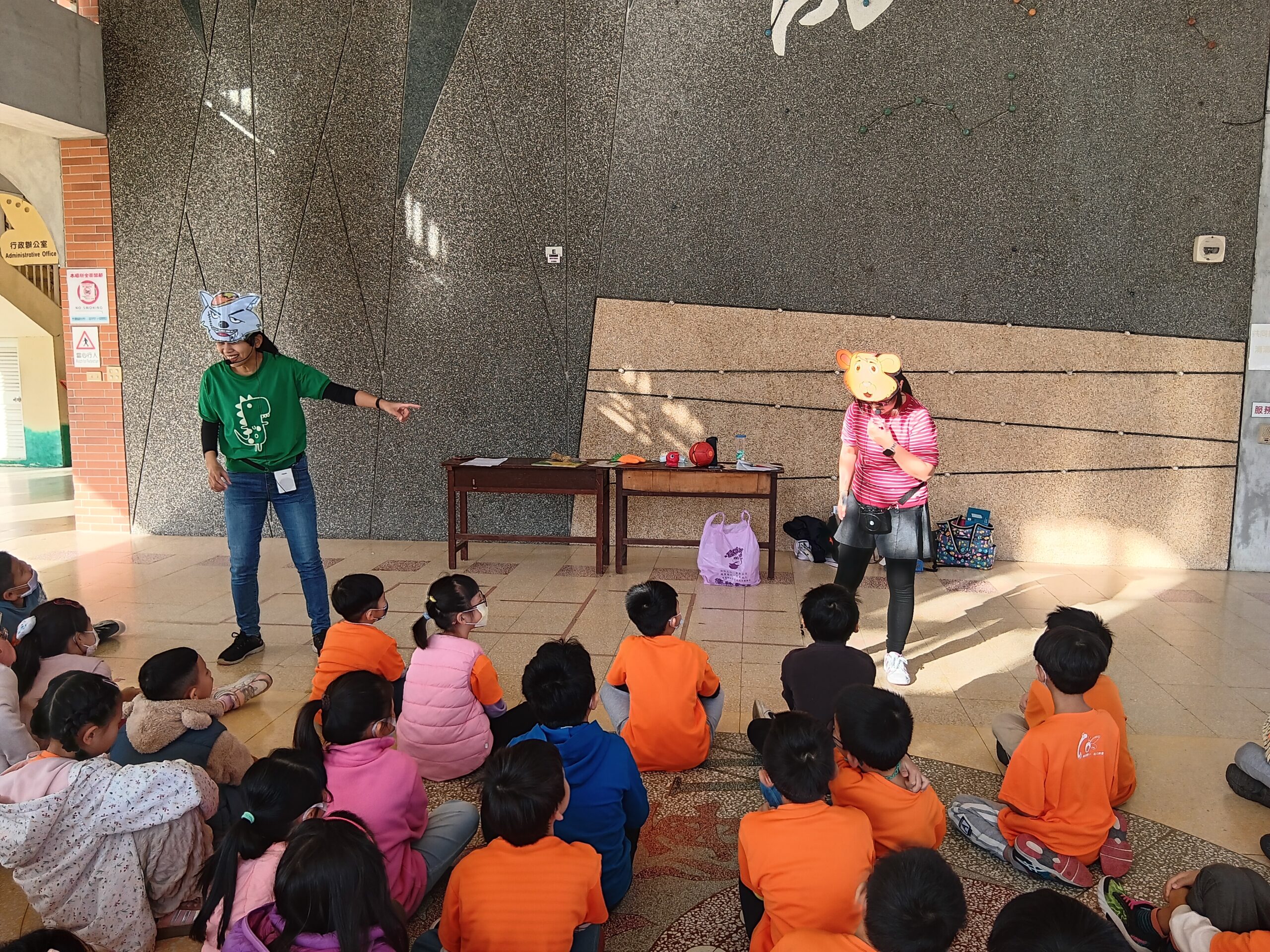 綠繪本姐姐說故事2023 年 11 月 22 日 林冠妙今天早上,綠繪本姐姐為二年級的小朋友說好聽的故事「大野狼,肚子餓」,大野狼因為人類破壞環境,讓牠沒有食物可吃,一路上遇到許多動物,但他們都不願幫助大野狼,最後,小白兔分享自己的紅蘿蔔,讓大野狼很感動。綠繪本姐姐說的故事都和生態保育、愛護地球的觀念相關,希望小朋友除了開心聽故事,還能身體力行愛護地球!